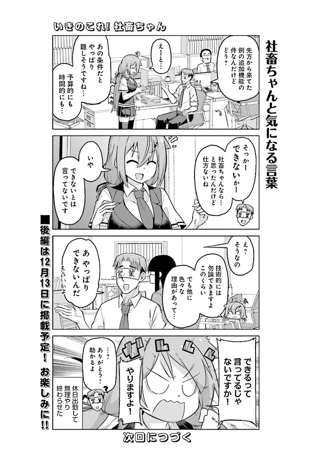 “いきのこれ! 社畜ちゃん” 第25話前編 いきのこれ! 社畜ちゃん 投稿者 admin - 3年 前に 幸せな読書漫画 “いきのこれ! 社畜ちゃん” 第25話前編 , いいねと共有ボタンをクリックすることを忘れないでください. Manga いきのこれ! 社畜ちゃん 常に更新されます 無料コミック Comic Top. 他のマンガの更新を読むことを忘れないでください。 マンガコレクションのリスト 無料コミック Comic Top マンガリストメニューにあります. お友達と共有しましょう! Facebook Twitter Pinterest Whatsapp 前のエピソード すべての章 次のエピソード リスト ページング Loading.. 前のエピソード すべての章 次のエピソード リスト ページング お友達と共有しましょう! Facebook Twitter Pinterest Whatsapp お気に入りに追加に続く 1 人 いきのこれ! 社畜ちゃん ツイッターで累計約4万リツイート、5万いいねを獲得した話題の社畜漫画がアットビタミンで掲載!! 小さなIT企業で働く“ごく”普通のサラリーマンコミック!! ビタワン(原作)結うき。(作画) BOOK☆WALKERでセール中!!forgirlsおっぱいショート夢見る少女じゃいられない日常系社畜美少女