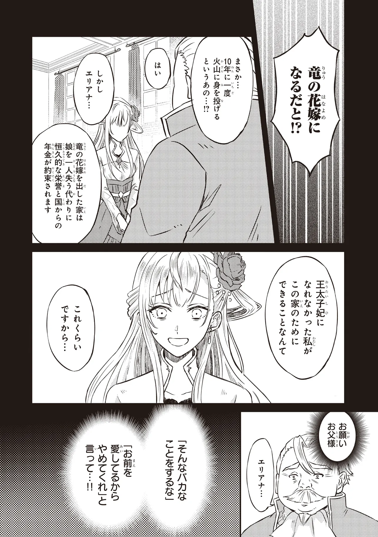 幼い頃からの地道な努力が実って王太子の婚約者の座を手に入れた途端、妹のワガママによりまさかの婚約破棄となった公爵令嬢エリアナ。傷心のまま”竜の花嫁”に立候補し、名誉ある生贄として煮え滾るマグマに身を投げたはずなのに、気づけばなぜかヨダレまみれで火口に倒れており……!? 「そのしきたりとやらに則って、お前を娶ることにしよう!」”伝説の竜”グリードと、”超お嬢様”エリアナの、波乱の主従(?)生活が幕を開ける!"