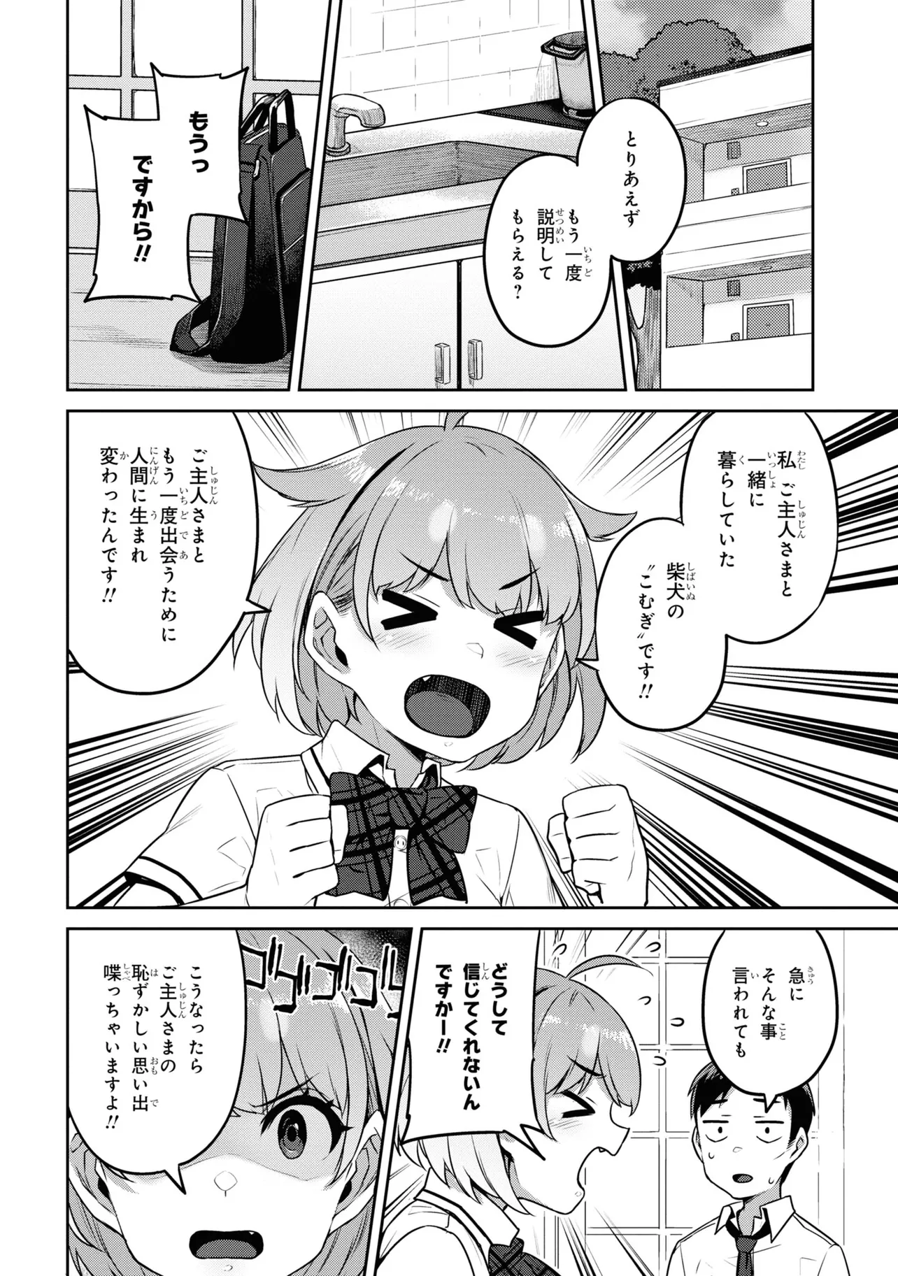 アラサー独身サラリーマンの犬飼はある日、こむぎと名乗る女子高生に出会う。 こむぎは自身を犬飼の愛犬の生まれ変わりだと言い、毎日彼の家に通い詰める…! こむぎの無防備さにドキドキしっぱなしの毎日が始まる…!! 犬っ娘JKと独身サラリーマンの、半同棲ラブコメディ!