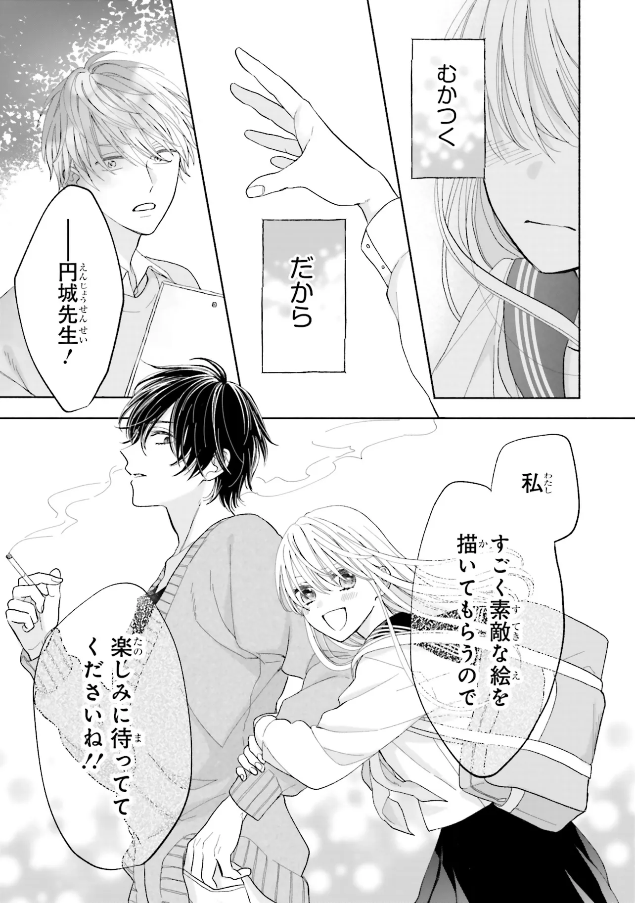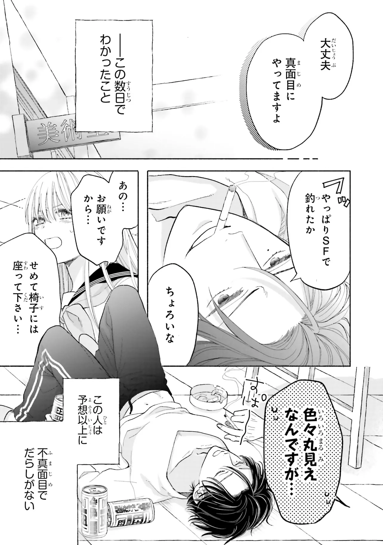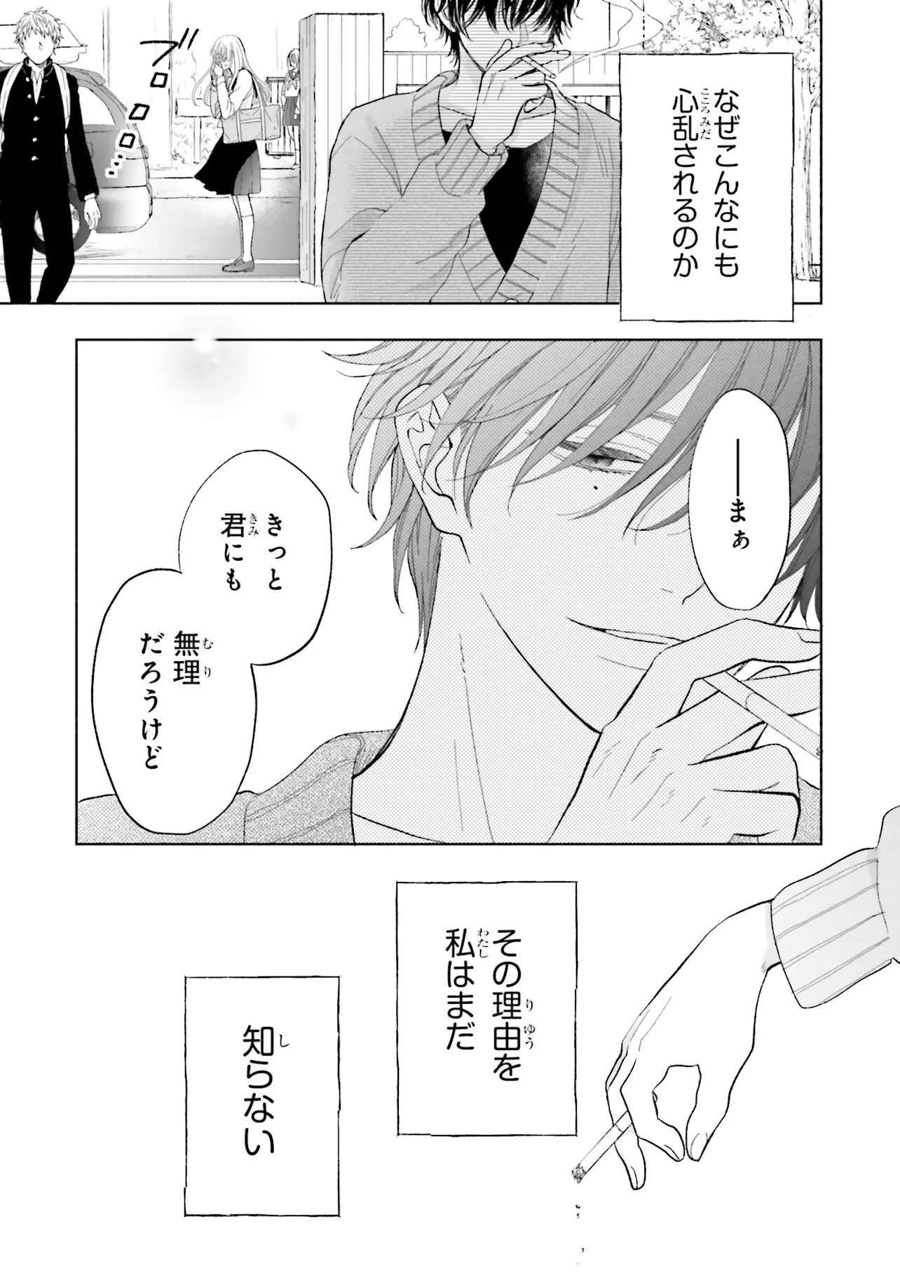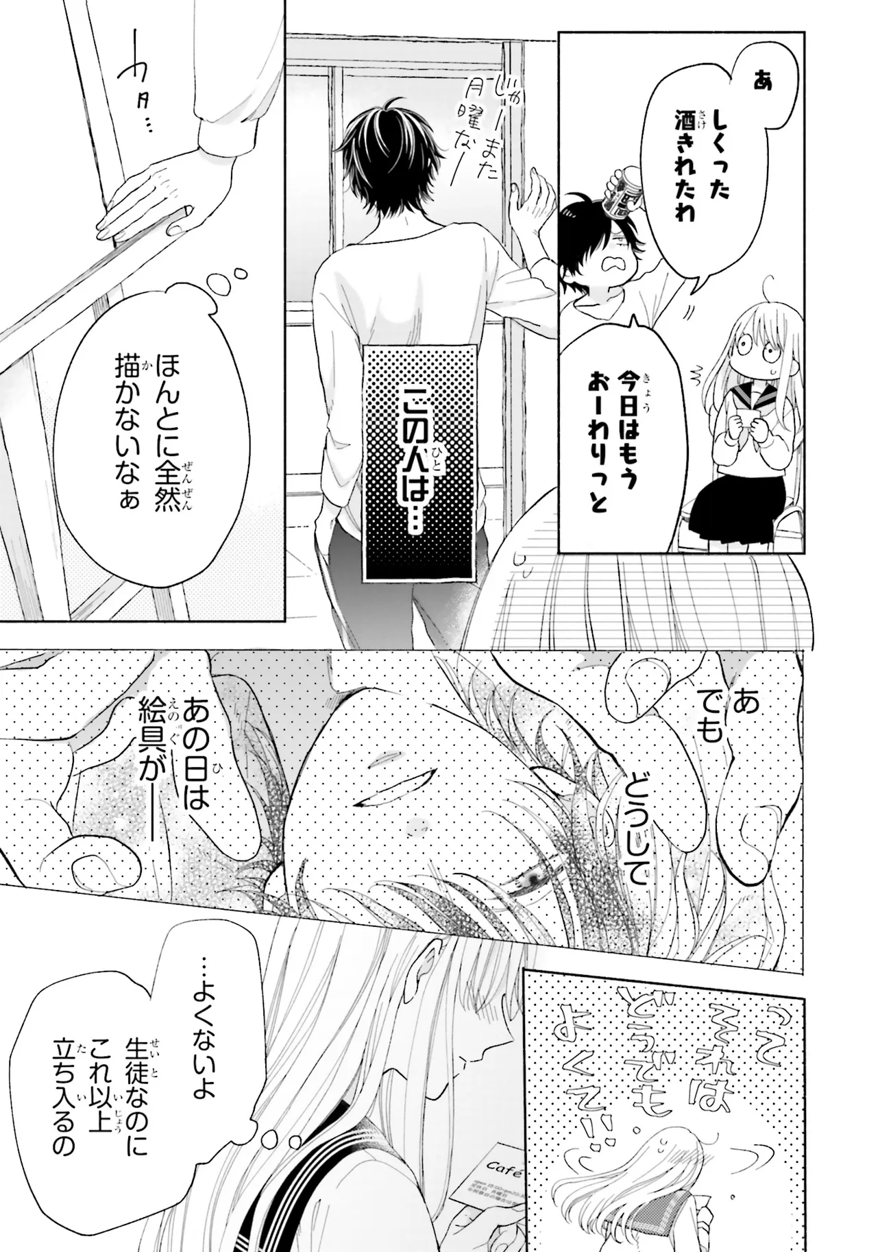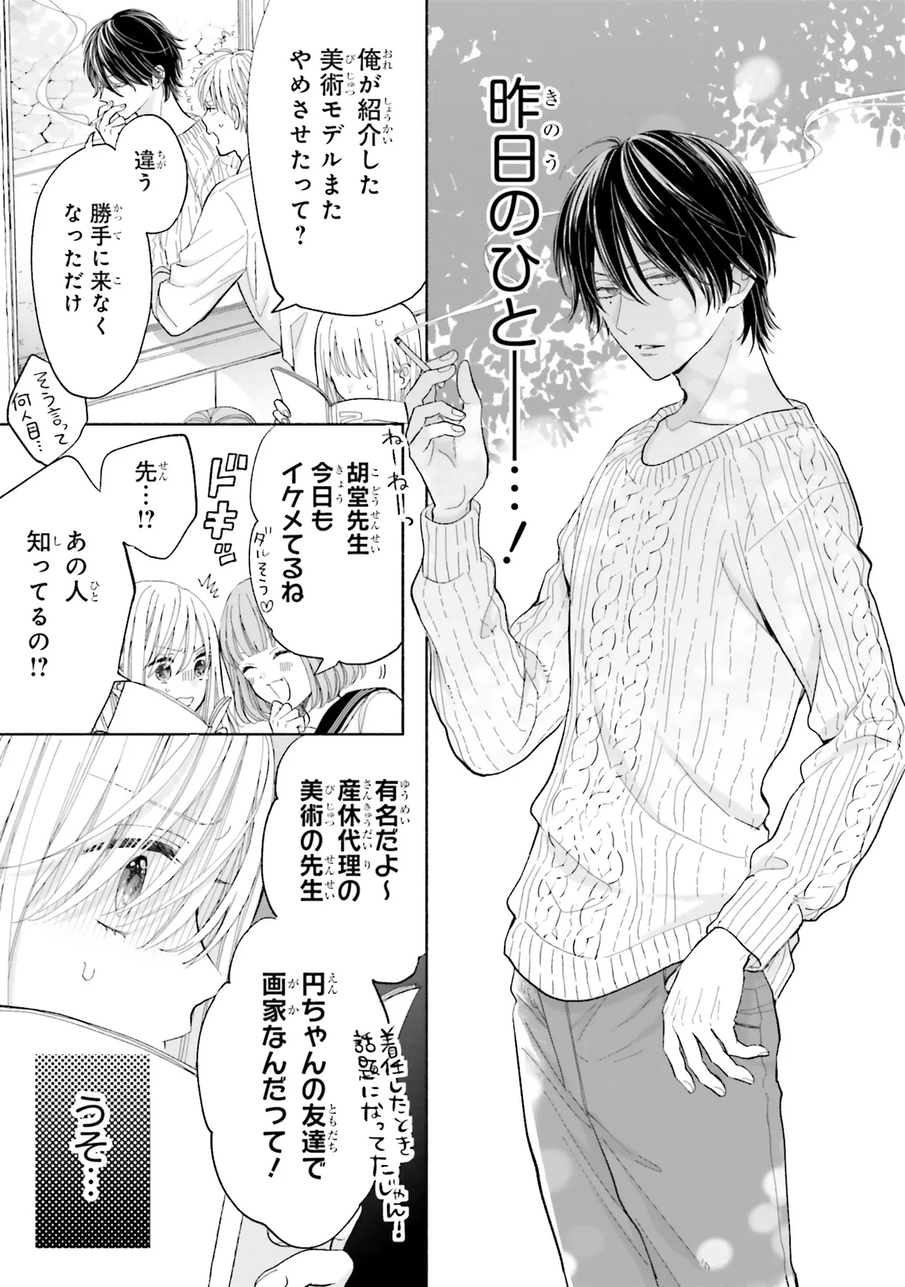 寝ぼけた男性に突然キスされた歩鳥は逃げ出すが、翌日の学校で非常勤の美術講師だという彼、胡堂(こどう)と再会してしまい──。