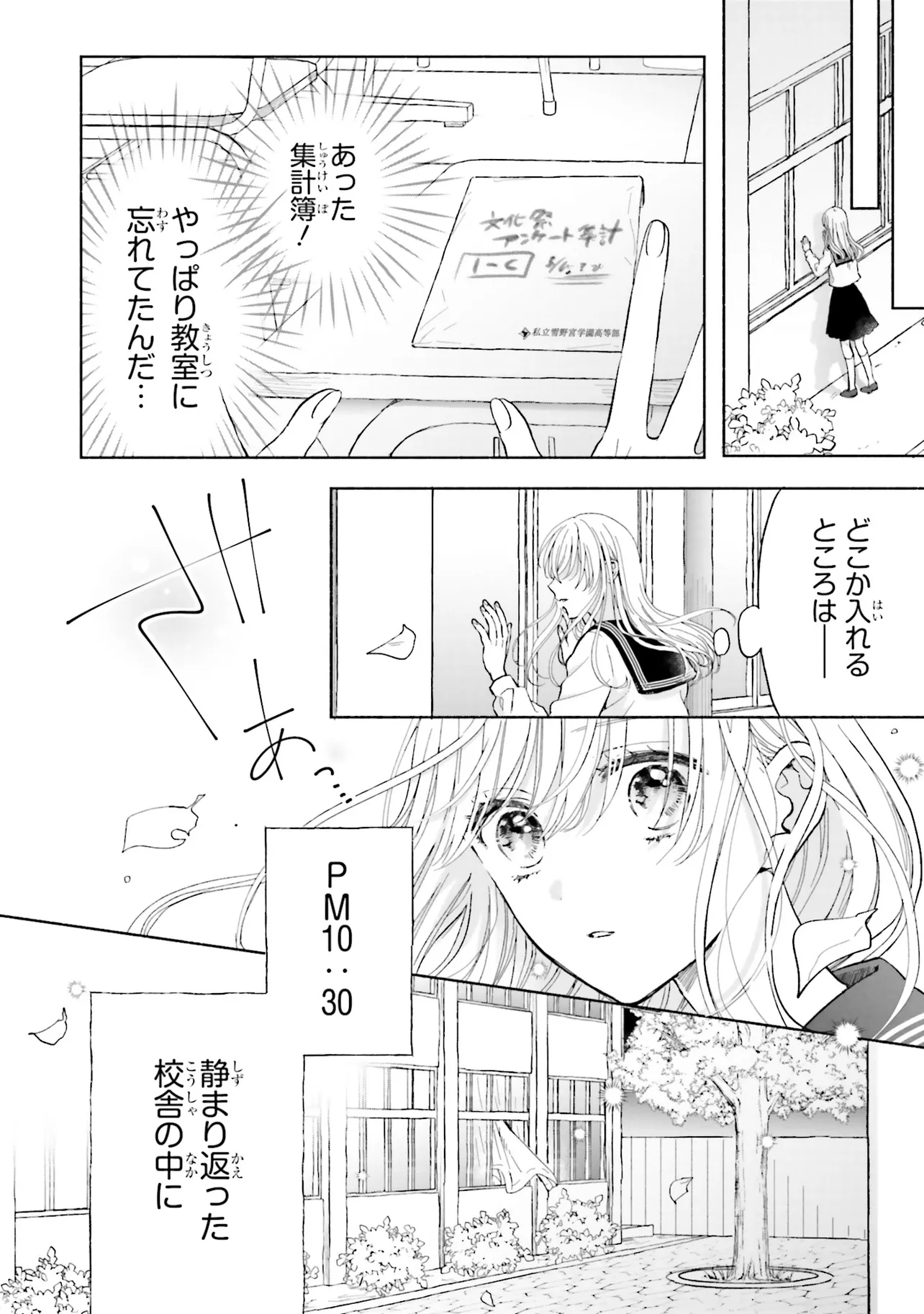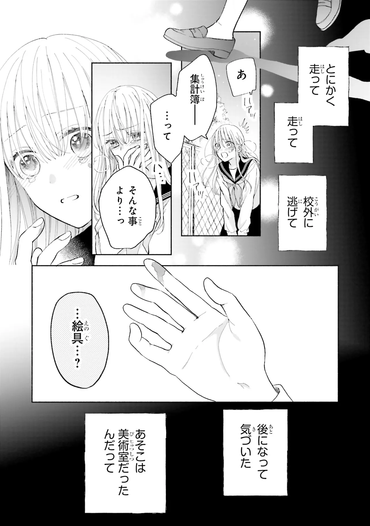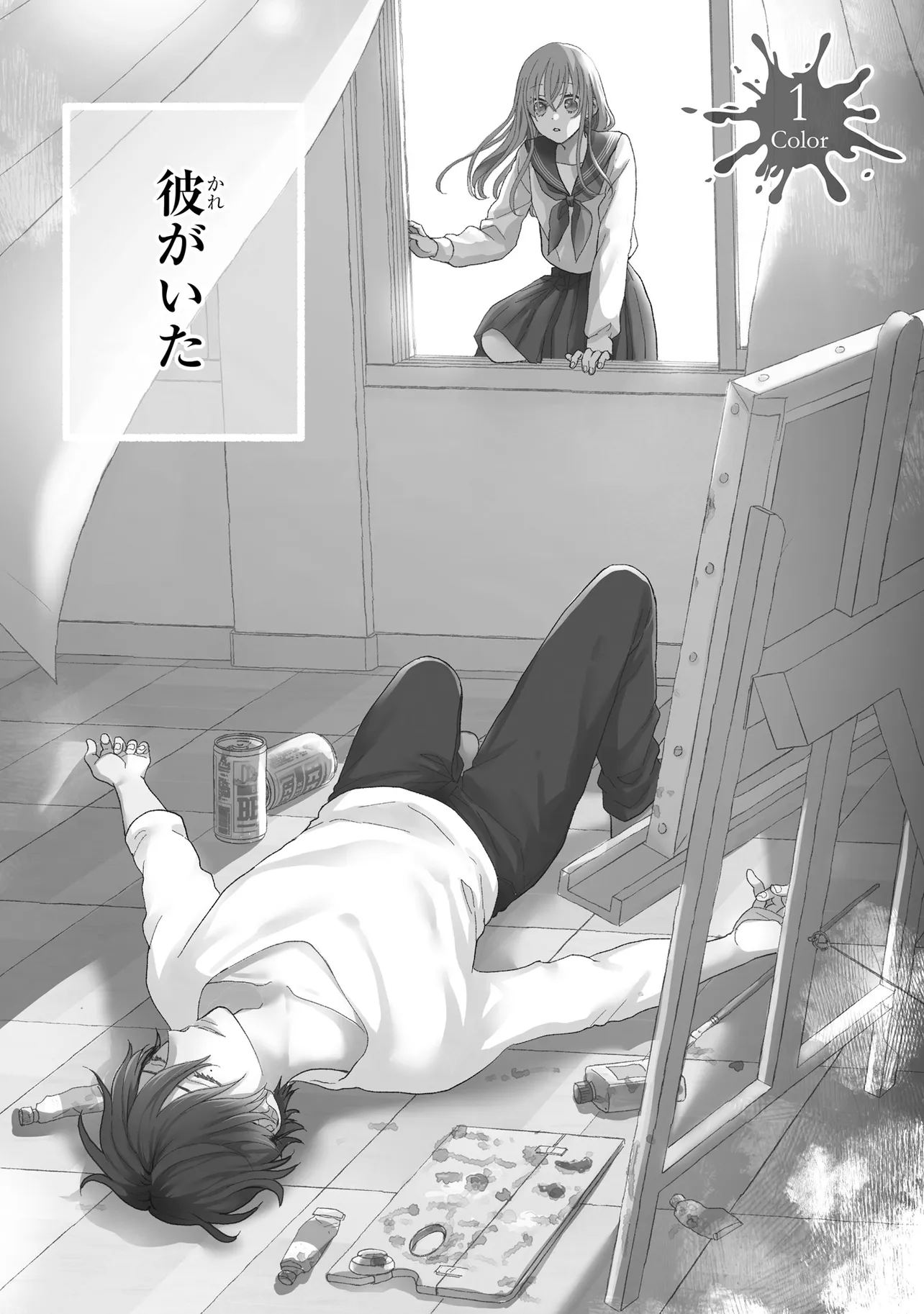 憧れの円城(えんじょう)先生に頼まれた集計用の名簿を忘れてしまい、夜に忍び込んだ学校の教室で、絵の具に囲まれて眠る男性を見つける。