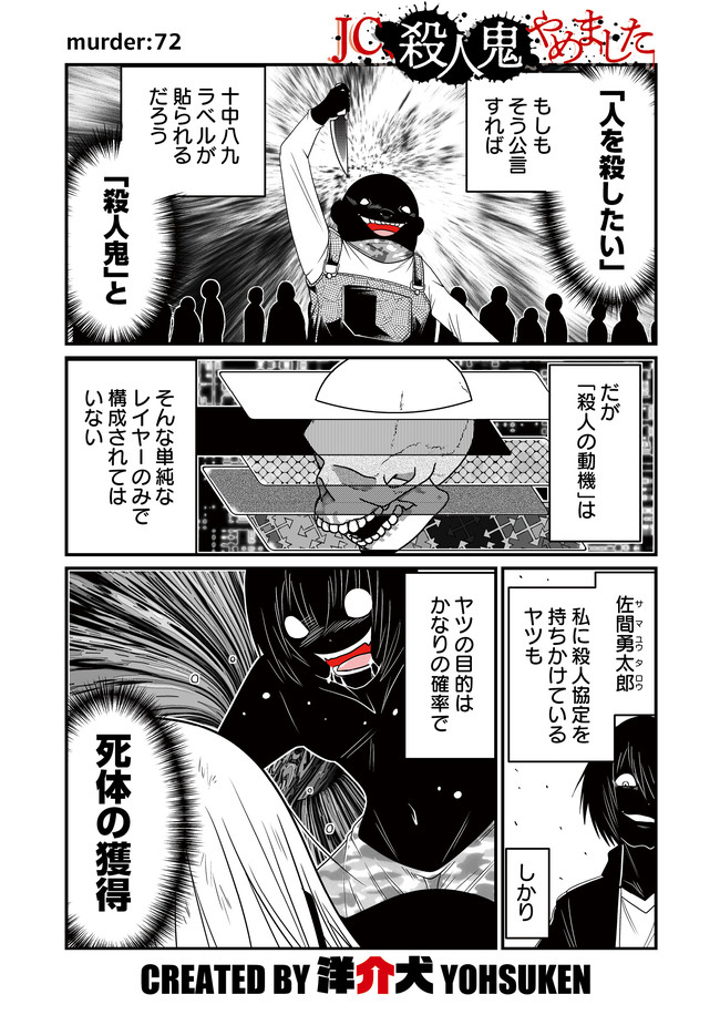 JC、殺人鬼やめました 第31話 JC、殺人鬼やめました 投稿者 admin - 3年 前に 幸せな読書漫画 JC、殺人鬼やめました 第31話 , いいねと共有ボタンをクリックすることを忘れないでください. Manga JC、殺人鬼やめました 常に更新されます 無料コミック Comic Top. 他のマンガの更新を読むことを忘れないでください。 マンガコレクションのリスト 無料コミック Comic Top マンガリストメニューにあります. お友達と共有しましょう! Facebook Twitter Pinterest Whatsapp 前のエピソード すべての章 次のエピソード リスト ページング Loading.. 前のエピソード すべての章 次のエピソード リスト ページング お友達と共有しましょう! Facebook Twitter Pinterest Whatsapp お気に入りに追加に続く 1 人 JC、殺人鬼やめました 26人もの人を殺しつつ、思うところあって殺人鬼をやめたJC、赤麻田。「もう殺さない」と禁煙ノリで頑張るが折りに触れ殺意が顔を出す…。 洋介犬(著者) JCコメディショートホラー