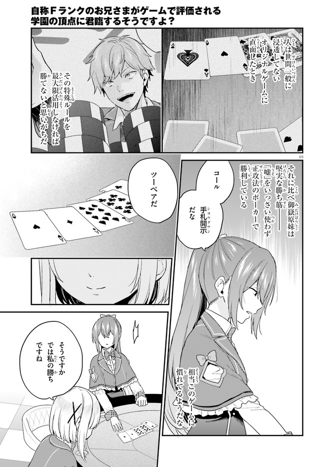 自称Fランクのお兄さまがゲームで評価される学園の頂点に君臨するそうですよ?