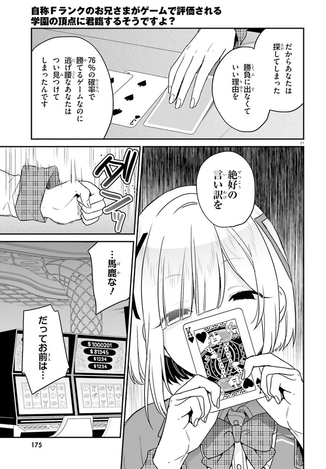 自称Fランクのお兄さまがゲームで評価される学園の頂点に君臨するそうですよ? 第22話