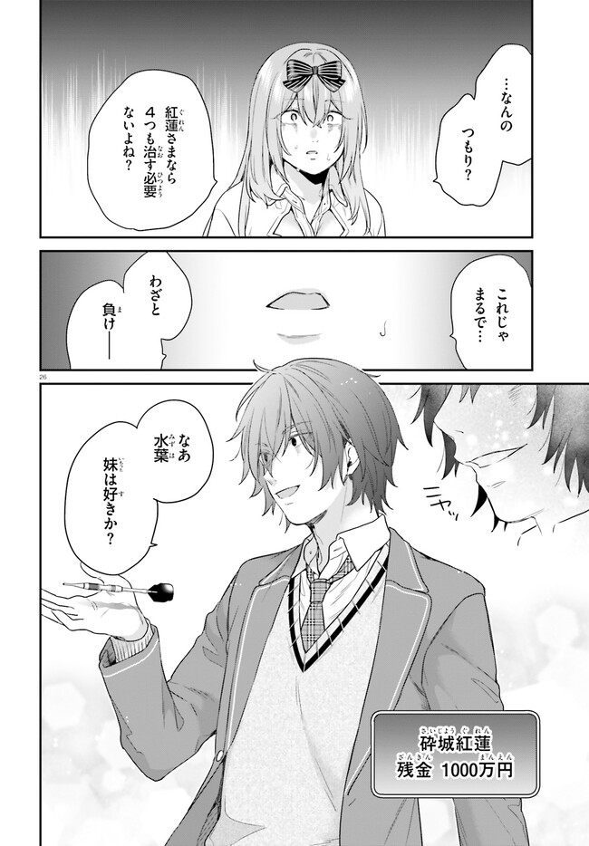 学業、運動、家柄、あらゆる分野のエリートだけを集めた日本最高峰の名門校・獅子王学園。だがその実態は、ゲームの結果ですべてが評価される弱肉強食の学園。絶対的な強者――獅子のみが生き残れる修羅の世界だった。裏世界のゲームで常勝無敗の伝説を残しながらも、面倒のない普通の人生を歩みたい主人公・砕城紅蓮は、入学試験で手を抜き、目論見通り最低位のFランクに認定される。しかし兄を心から愛する血の繋がった妹・砕城可憐と再会し、事態は急変。そして学園の『悪意』が可憐を襲ったとき、紅蓮は真の実力を発揮する――!