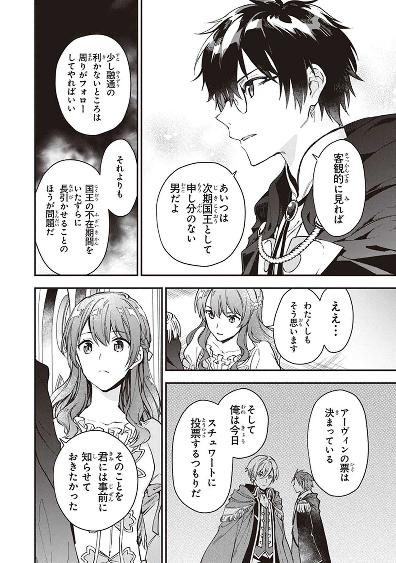 パニックの私の前に現れたのは王様候補の貴公子達――華やかで俺様なスチュワート、頭脳派のシアン、騎士団長のアーヴィン。