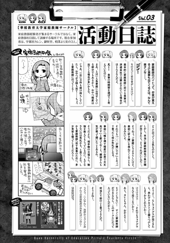 ------この作品は連載を終了しています------ 持ち前の運の良さだけで徳島県の国立大学へ入学した宇都宮カレンは、思いつきで家庭教師のバイトに目をつける。しかし友達の鍵咲空と相澤より美から「バカ」扱いされる始末。そこで大学内で見つけた「家庭教師サークル」を覗いてみると、そこには……!?ギャグ作家・津々巳あやの真骨頂、ハイテンションツッコミコメディをご覧あれ! コミックトップ版でしか読めない下書きラフ原稿版『女子大生の日常・裏版』も同時配信中!