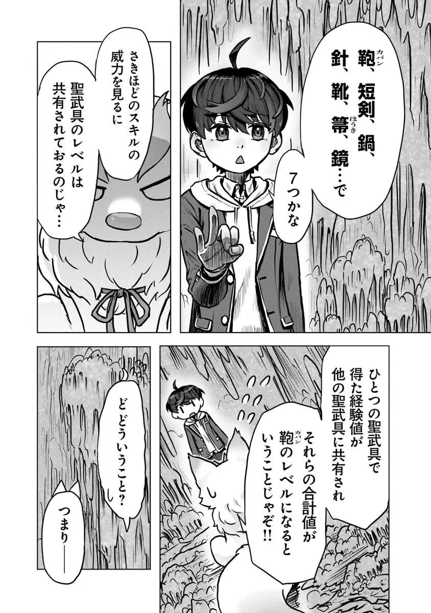 春から高校生になる少年・佐久平啓介(さくだいら・けいすけ)はある日突然、異世界に召喚され、勇者として魔王を討伐するよう告げられる。だが、彼に与えられた神器【聖武具】は、なんの変哲もない高校の通学カバン……!? 直後、役立たず勇者のレッテルを貼られ、啓介は召喚主である女王によって強力モンスターひしめく最難関ダンジョンに廃棄されてしまうのだった。
