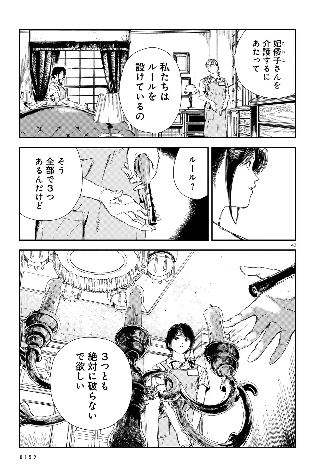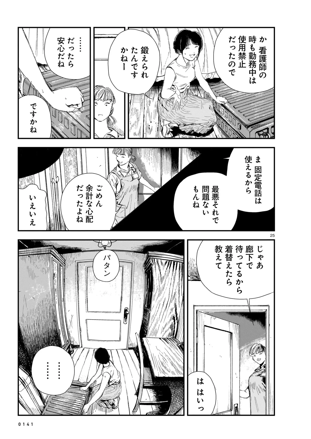 屍介護 第1話 屍介護 投稿者 admin - 1年 前に 幸せな読書漫画 屍介護 第1話 , いいねと共有ボタンをクリックすることを忘れないでください. Manga 屍介護 常に更新されます 無料コミック Comic Top. 他のマンガの更新を読むことを忘れないでください。 マンガコレクションのリスト 無料コミック Comic Top マンガリストメニューにあります. お友達と共有しましょう! Facebook Twitter Pinterest Whatsapp 前のエピソード すべての章 次のエピソード リスト ページング Loading.. 前のエピソード すべての章 次のエピソード リスト ページング お友達と共有しましょう! Facebook Twitter Pinterest Whatsapp お気に入りに追加に続く 0 人 屍介護 人里離れた山奥に建つ、とある屋敷。 新人ヘルパーの栗谷茜は、 寝たきりの要介護者でこの屋敷の主人、宮園妃倭子への住み込みでの介護を行うため、屋敷へと訪れた。 新天地への希望を胸に妃倭子と対面した茜が目にしたもの…それは 腐臭を放ち、肌が変色し、顔に麻袋を被せた「死体」にしか見えない妃倭子の異様な姿と、 明らかに異常なその介護の内容だった――…。 『角川ホラー文庫』×『青騎士』。渾身のタッグで送る禁断の介護ホラー! 三卜和貴三浦晴海香魚子 WEB小説シリアスダークドキドキハラハラドラマ大人向け現代