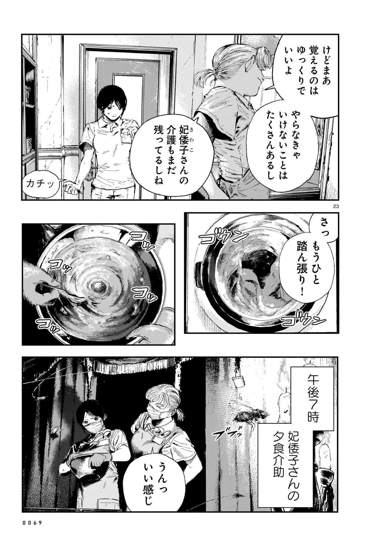 屍介護 第4話-2 屍介護 投稿者 admin - 1年 前に 幸せな読書漫画 屍介護 第4話-2 , いいねと共有ボタンをクリックすることを忘れないでください. Manga 屍介護 常に更新されます 無料コミック Comic Top. 他のマンガの更新を読むことを忘れないでください。 マンガコレクションのリスト 無料コミック Comic Top マンガリストメニューにあります. お友達と共有しましょう! Facebook Twitter Pinterest Whatsapp 前のエピソード すべての章 次のエピソード リスト ページング Loading.. 前のエピソード すべての章 次のエピソード リスト ページング お友達と共有しましょう! Facebook Twitter Pinterest Whatsapp お気に入りに追加に続く 0 人 屍介護 人里離れた山奥に建つ、とある屋敷。 新人ヘルパーの栗谷茜は、 寝たきりの要介護者でこの屋敷の主人、宮園妃倭子への住み込みでの介護を行うため、屋敷へと訪れた。 新天地への希望を胸に妃倭子と対面した茜が目にしたもの…それは 腐臭を放ち、肌が変色し、顔に麻袋を被せた「死体」にしか見えない妃倭子の異様な姿と、 明らかに異常なその介護の内容だった――…。 『角川ホラー文庫』×『青騎士』。渾身のタッグで送る禁断の介護ホラー! 三卜和貴三浦晴海香魚子 WEB小説シリアスダークドキドキハラハラドラマ大人向け現代
