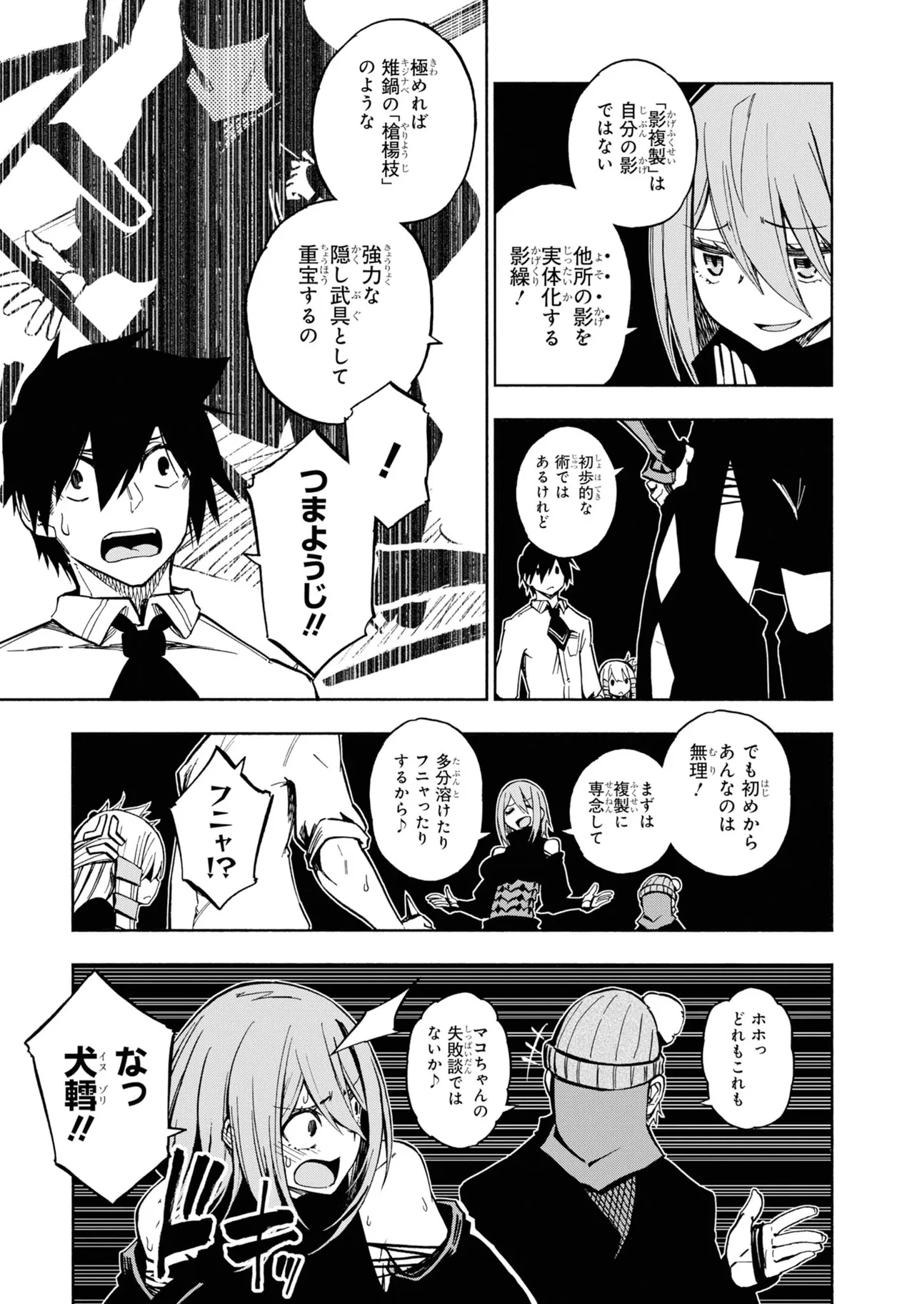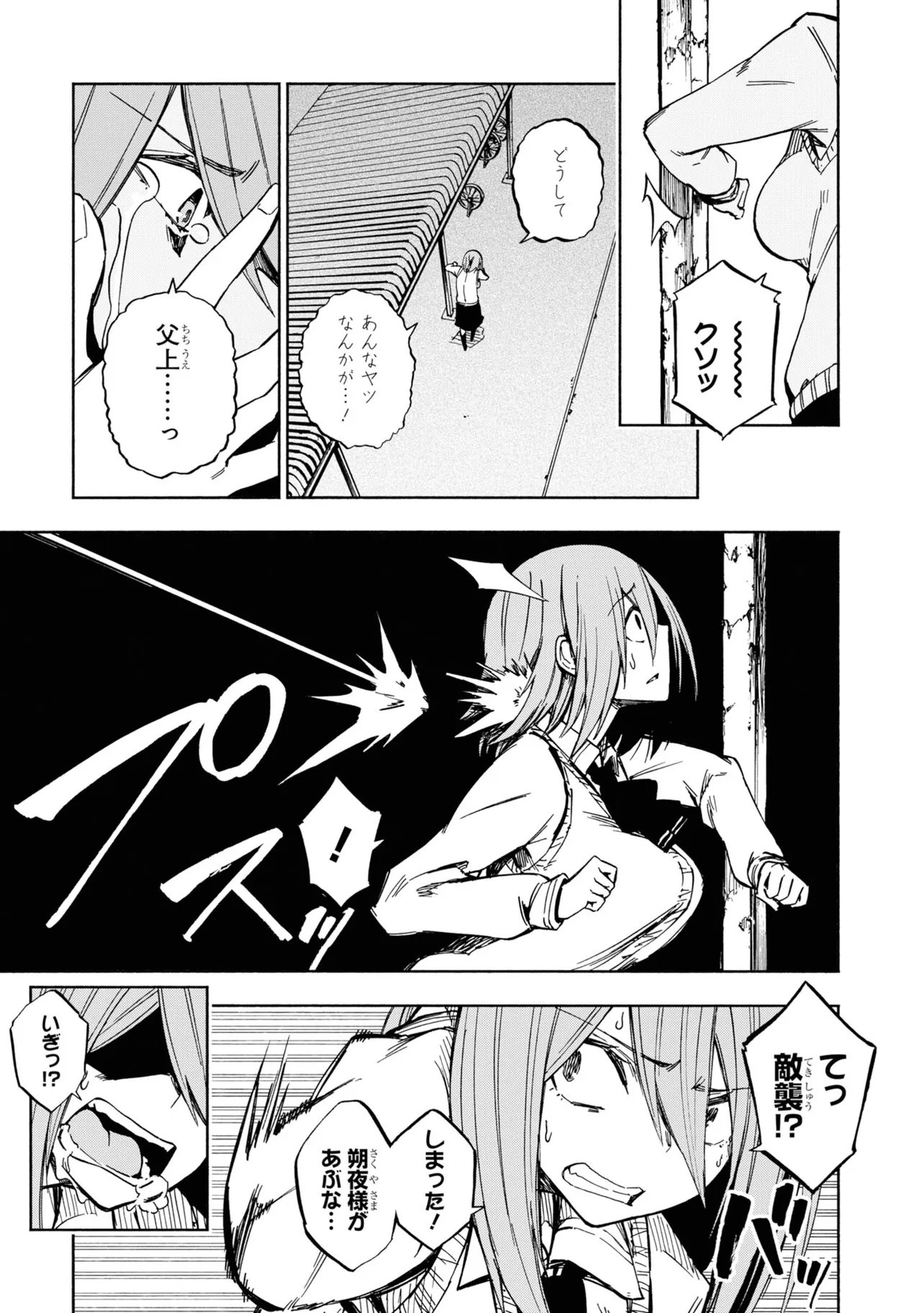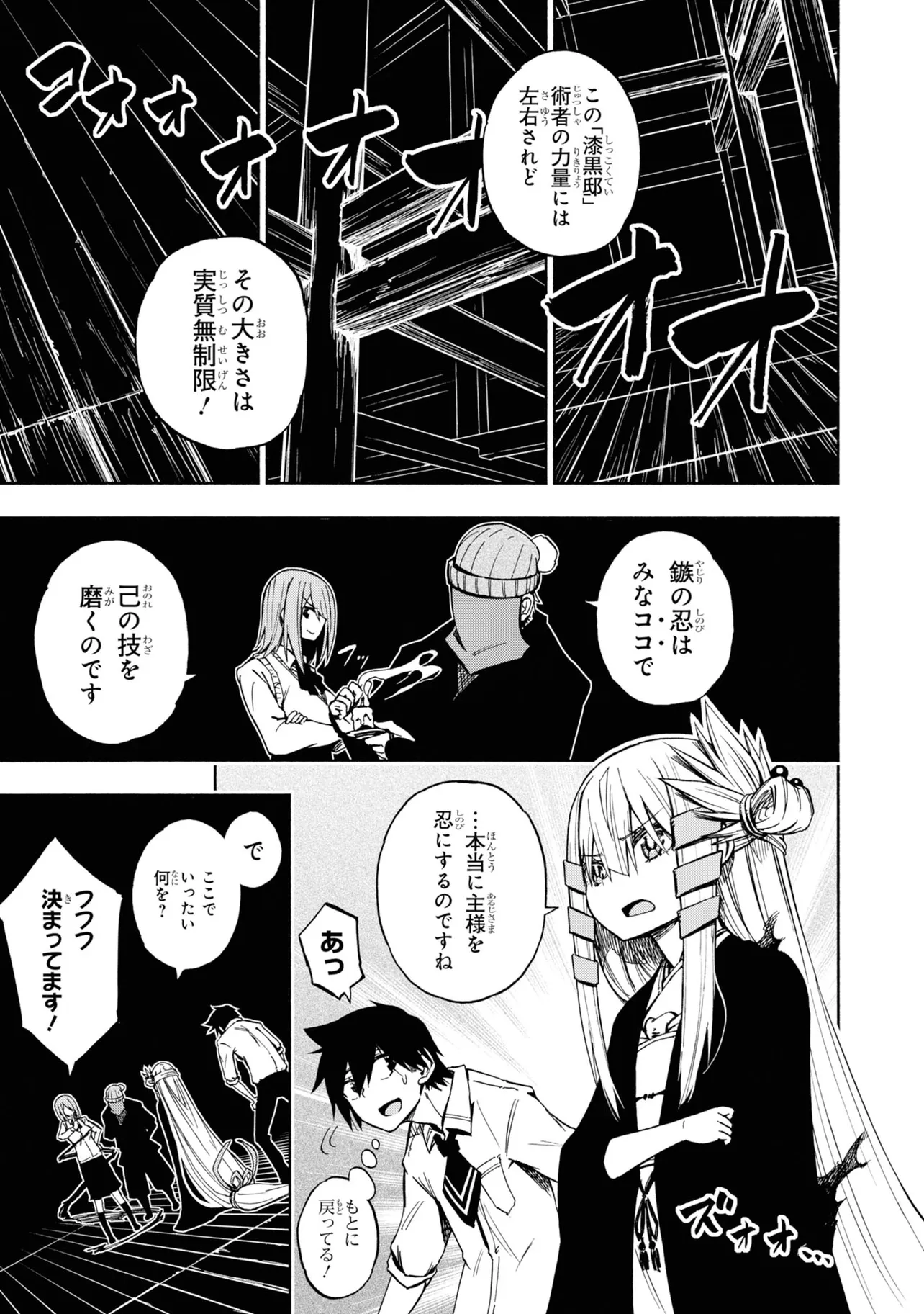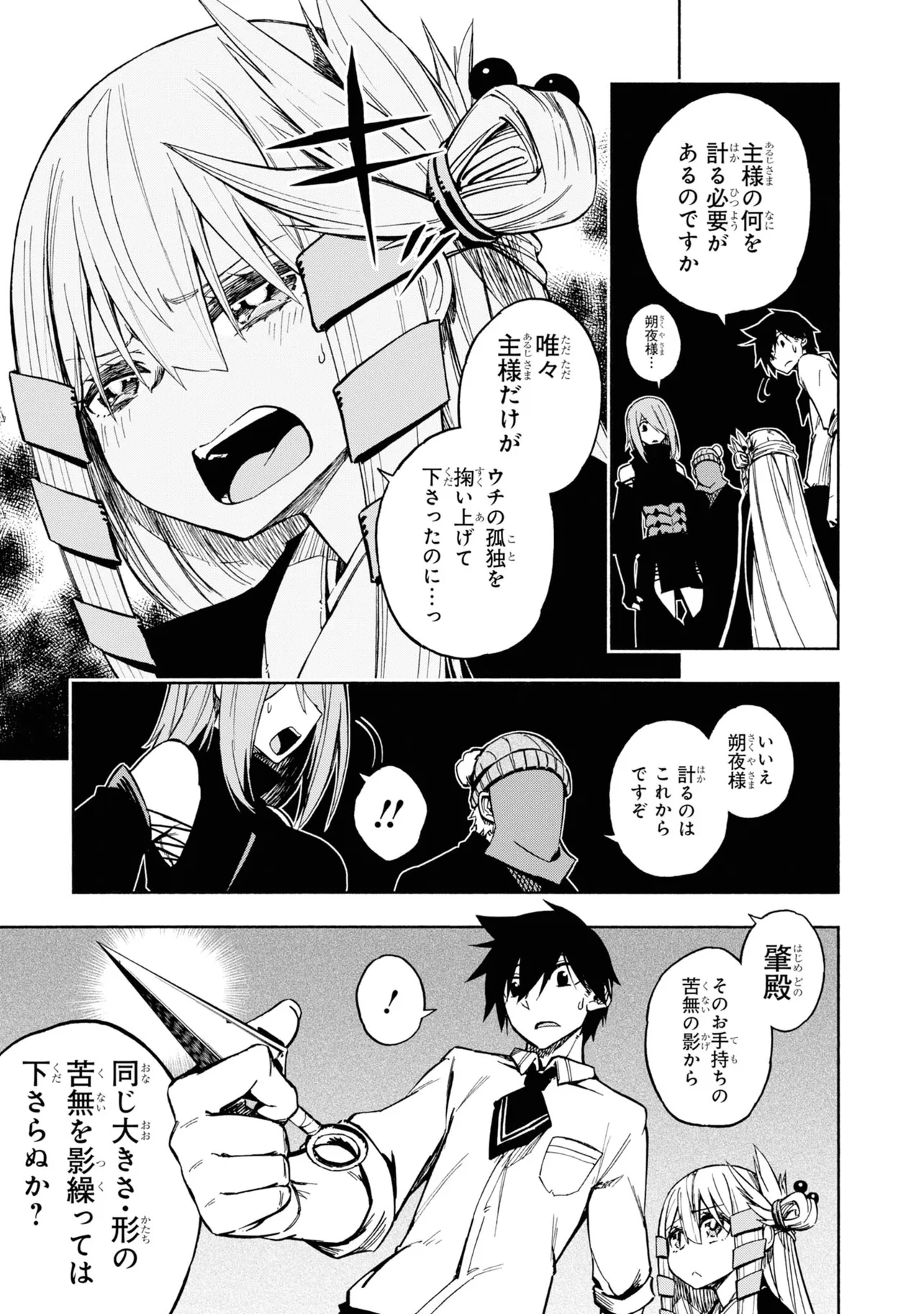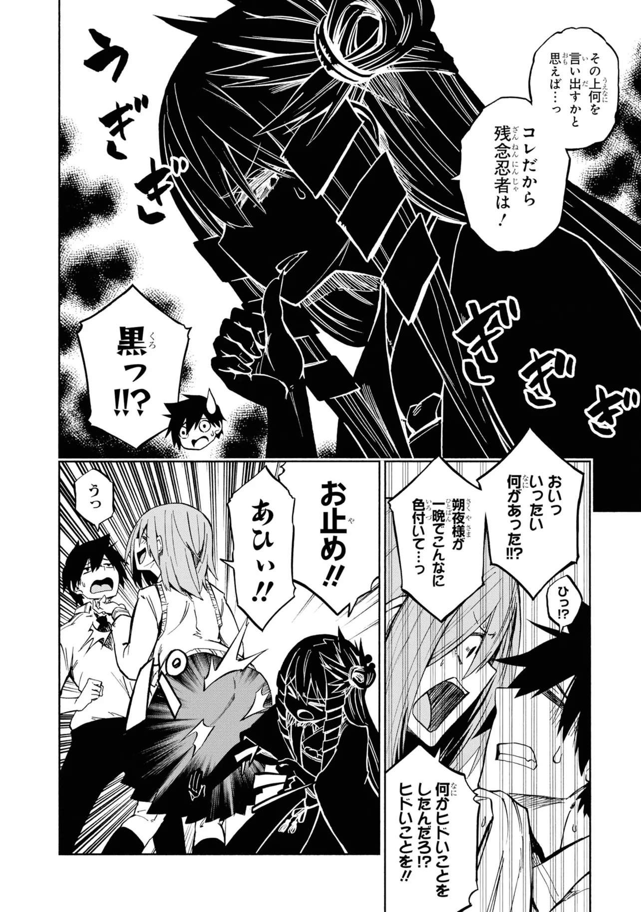 影の中にバケモノを視てしまう灯下肇はある日、影に潜む少女を見つける。今までになかった状況に逃げ戸惑う肇に、その少女はとある取引をもちかけて来て――。影絵×忍者で贈る最先端お色気アクション!