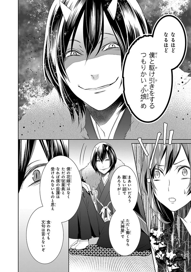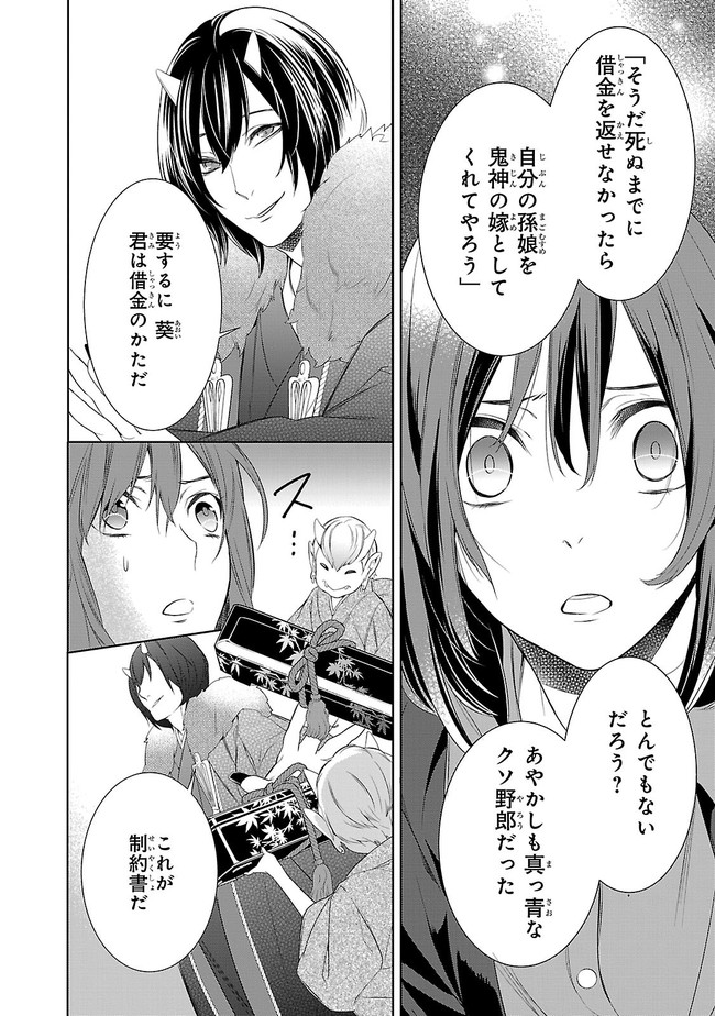 あやかしの棲まう “隠世(かくりよ)”にある老舗宿「天神屋」。 大人気「妖怪×宿飯」ノベル、コミカライズ!! 亡き祖父譲りの「あやかしを見る力」を持つ女子大生・葵は、 得意の料理で野良あやかしを餌付けていた最中、 突然「天神屋」の大旦那である鬼神にさらわれてしまう。 大旦那曰く、祖父が残した借金のカタとして、 葵は大旦那に嫁入りしなくてはならないのだという。 嫌がる葵は起死回生の策として、 「天神屋」で働いて借金を返済すると宣言してしまうのだが……。 あやかしお宿を舞台に繰り広げる、葵の細腕繁盛記!