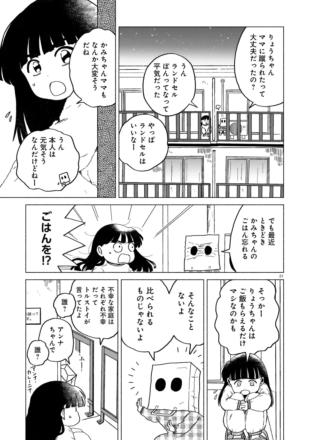 かみちゃん 第二話 かみちゃん 投稿者 admin - 2年 前に 幸せな読書漫画 かみちゃん 第二話 , いいねと共有ボタンをクリックすることを忘れないでください. Manga かみちゃん 常に更新されます 無料コミック Comic Top. 他のマンガの更新を読むことを忘れないでください。 マンガコレクションのリスト 無料コミック Comic Top マンガリストメニューにあります. お友達と共有しましょう! Facebook Twitter Pinterest Whatsapp 前のエピソード すべての章 次のエピソード リスト ページング Loading.. 前のエピソード すべての章 次のエピソード リスト ページング お友達と共有しましょう! Facebook Twitter Pinterest Whatsapp お気に入りに追加に続く 0 人 かみちゃん 隣の家に住む「かみちゃん」は、いつも紙袋をかぶっている謎めいた女の子。 幼稚園児と人外の子の、不思議で切実な友情物語。 八咫烏杯出身の新鋭・古田青葉の初連載! 古田青葉 ドラマ人外友情・仲間幼馴染日常系