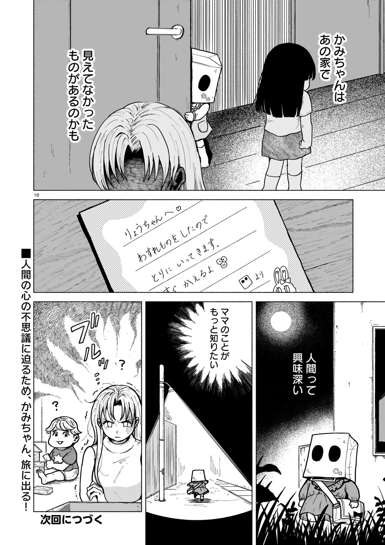 かみちゃん 第六話 かみちゃん 投稿者 admin - 1年 前に 幸せな読書漫画 かみちゃん 第六話 , いいねと共有ボタンをクリックすることを忘れないでください. Manga かみちゃん 常に更新されます 無料コミック Comic Top. 他のマンガの更新を読むことを忘れないでください。 マンガコレクションのリスト 無料コミック Comic Top マンガリストメニューにあります. お友達と共有しましょう! Facebook Twitter Pinterest Whatsapp 前のエピソード すべての章 次のエピソード リスト ページング Loading.. 前のエピソード すべての章 次のエピソード リスト ページング お友達と共有しましょう! Facebook Twitter Pinterest Whatsapp お気に入りに追加に続く 0 人 かみちゃん 隣の家に住む「かみちゃん」は、いつも紙袋をかぶっている謎めいた女の子。 幼稚園児と人外の子の、不思議で切実な友情物語。 八咫烏杯出身の新鋭・古田青葉の初連載! 古田青葉 ドラマ人外友情・仲間幼馴染日常系