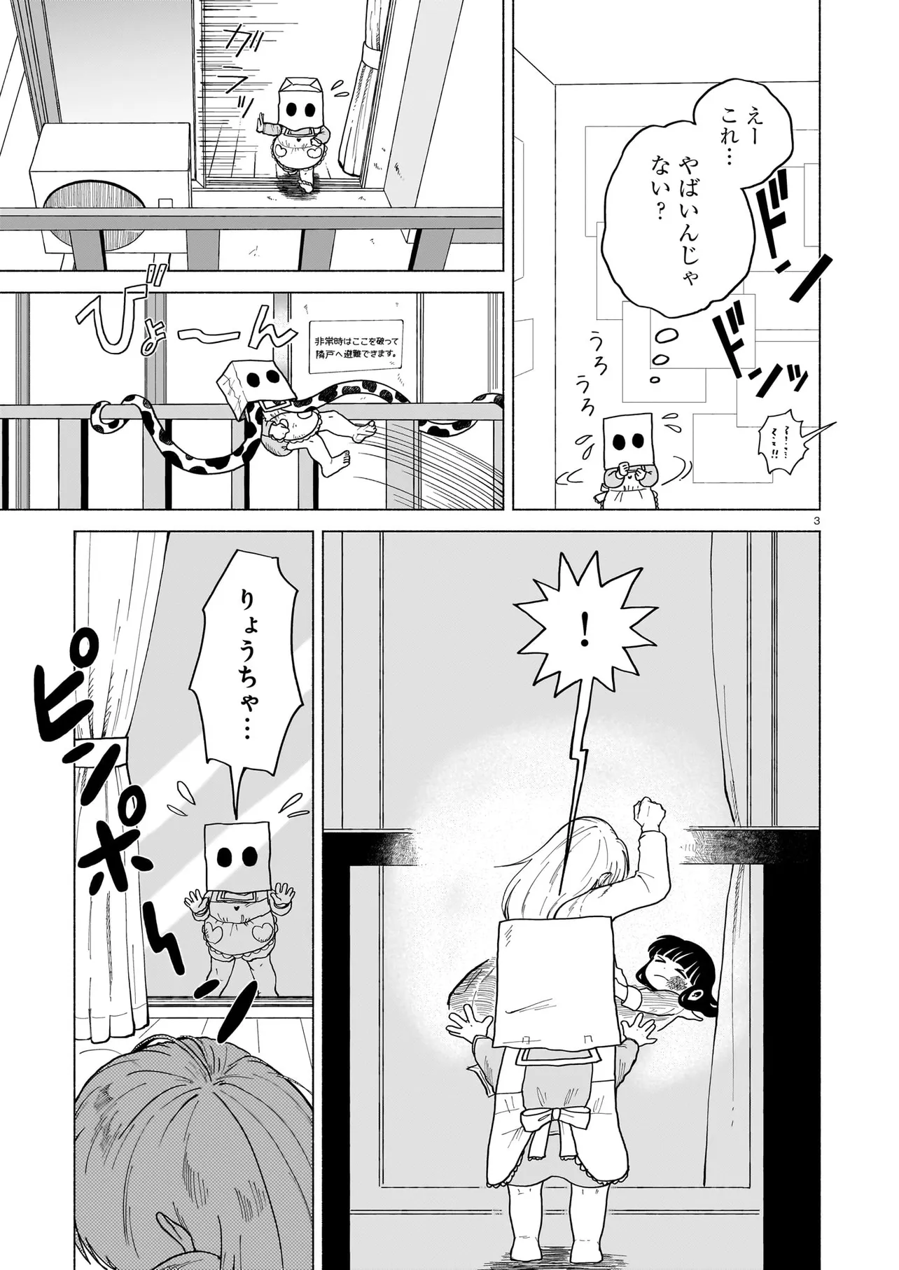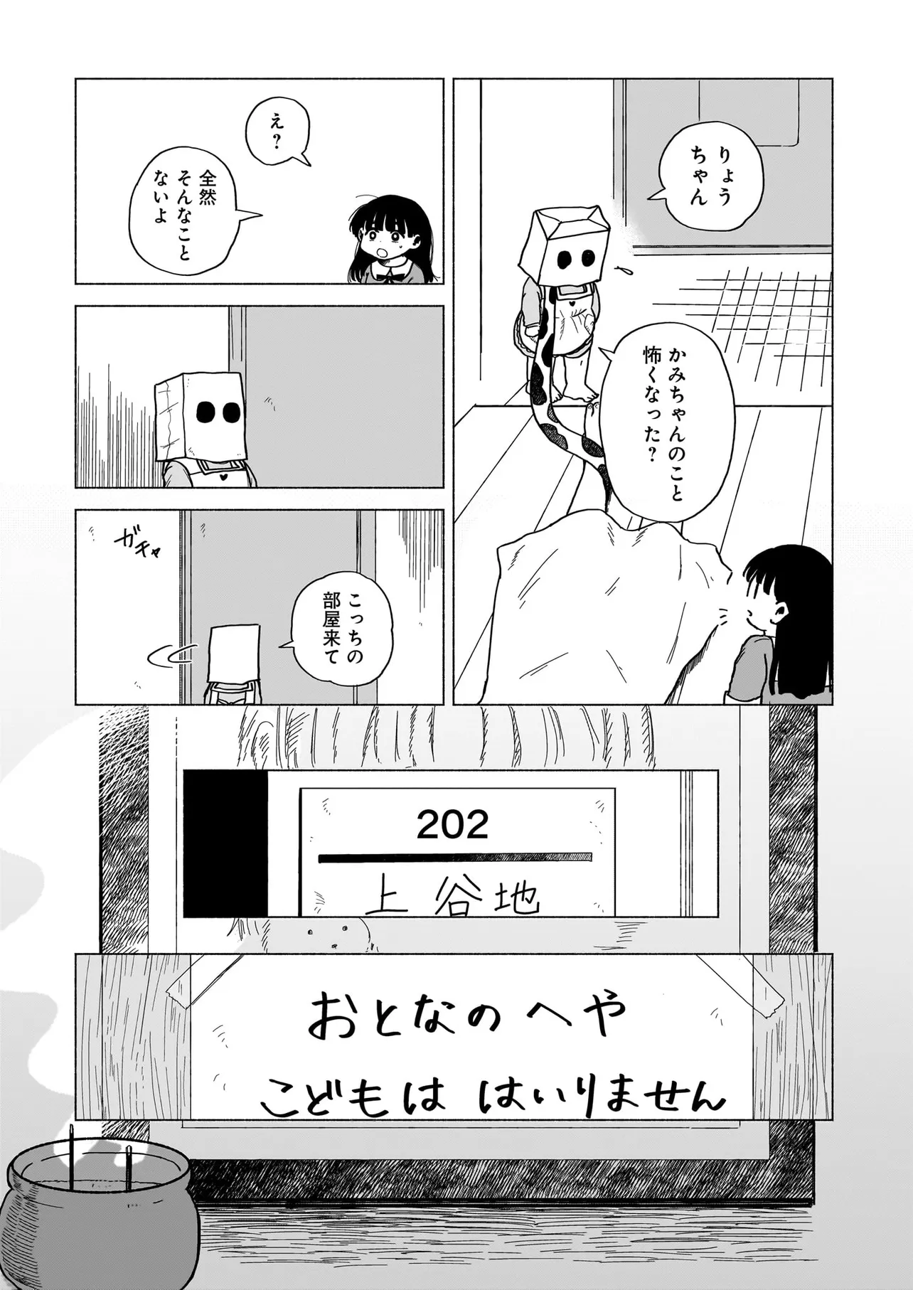かみちゃん 第三話 かみちゃん 投稿者 admin - 1年 前に 幸せな読書漫画 かみちゃん 第三話 , いいねと共有ボタンをクリックすることを忘れないでください. Manga かみちゃん 常に更新されます 無料コミック Comic Top. 他のマンガの更新を読むことを忘れないでください。 マンガコレクションのリスト 無料コミック Comic Top マンガリストメニューにあります. お友達と共有しましょう! Facebook Twitter Pinterest Whatsapp 前のエピソード すべての章 次のエピソード リスト ページング Loading.. 前のエピソード すべての章 次のエピソード リスト ページング お友達と共有しましょう! Facebook Twitter Pinterest Whatsapp お気に入りに追加に続く 0 人 かみちゃん 隣の家に住む「かみちゃん」は、いつも紙袋をかぶっている謎めいた女の子。 幼稚園児と人外の子の、不思議で切実な友情物語。 八咫烏杯出身の新鋭・古田青葉の初連載! 古田青葉 ドラマ人外友情・仲間幼馴染日常系