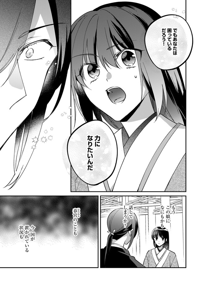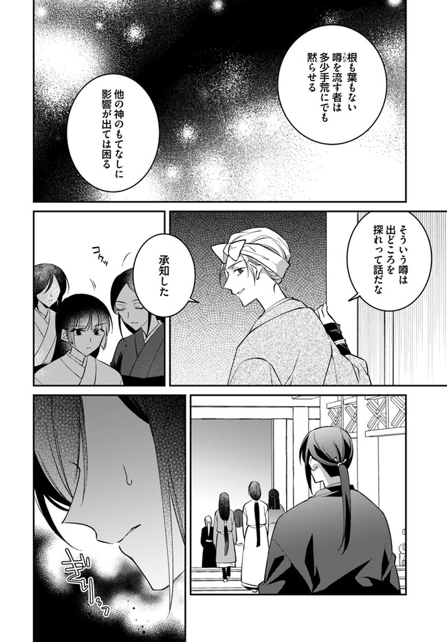 兜坂国の斎庭(後宮)は、神を招き、もてなす場。 実体を持つ神々は豊穣と繁栄を招く反面、ひとたび荒ぶれば恐ろしい災厄を国にもたらす。 地方の郡領の娘・綾芽は、親友の死の真相を探るため上京した。 そこで偶然、荒ぶる女神を鎮めてみせた綾芽は、王弟の二藍に斎庭の女官として取り立てられる。 だが、それは国の存亡を揺るがす事件の幕開けに過ぎなかった……。