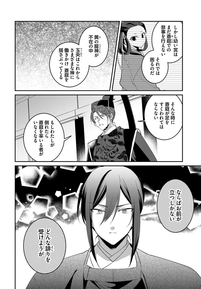 兜坂国の斎庭(後宮)は、神を招き、もてなす場。 実体を持つ神々は豊穣と繁栄を招く反面、ひとたび荒ぶれば恐ろしい災厄を国にもたらす。 地方の郡領の娘・綾芽は、親友の死の真相を探るため上京した。 そこで偶然、荒ぶる女神を鎮めてみせた綾芽は、王弟の二藍に斎庭の女官として取り立てられる。 だが、それは国の存亡を揺るがす事件の幕開けに過ぎなかった……。