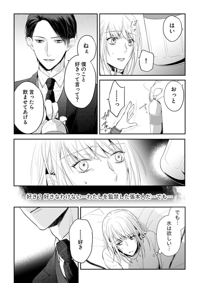 ある日突然、私は鎖に繋がれ、監禁された――。 ある夜、帰宅中のOL・杏奈は、エリートサラリーマン風のイケメン男性に道を尋ねられる。しかし記憶があるのはそこまでで、なぜかその後気を失ってしまったのだった。そして目が覚めると、無機質な部屋の真ん中に配置されたベッドの上で、拘束具を付けられていて…!? 人は極限の状態で、狂気的な歪んだ愛を一心に向けられた時、どうなってしまうのか…。