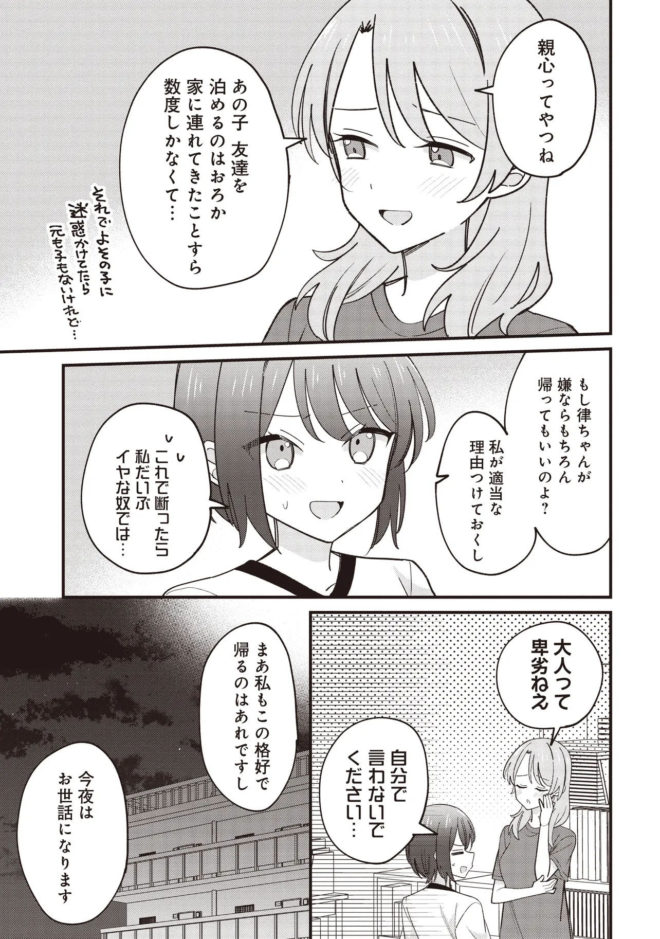 トップカーストグループに在籍する海道律《かいどうりつ》は、周囲に流される形で付き合っている彼氏がいた。 そんな彼と付き合ってもうすぐ一年を迎えようという夏の日、 彼氏とキスをしようという場面をクラスメイトの矢来綴《やらいつづり》に目撃されて……? 普通の女子高生が、元気で優しくて抜けていて、それでいて顔の良い女の子と恋をする物語。