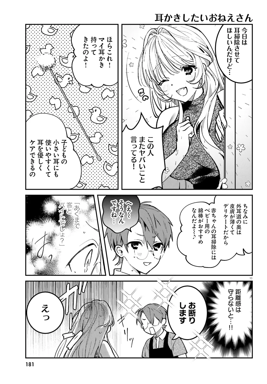 大学1年生の佐野司(♂)は、カラオケ店でアルバイトをしている。 ある日、綺麗なお姉さんがひとりカラオケにやってきた。 なんと彼女は、元・歌のおねえさんだった! 「1曲だけでいいから聞いてほしい」とお願いされた主人公は、仕方なくOKすることに。 ところが、お姉さんは主人公を幼児に見立てて「お着替えの歌」や「歯磨きの歌」を歌い始めて…!? 刺激的なふたりカラオケラブコメ、開幕♪