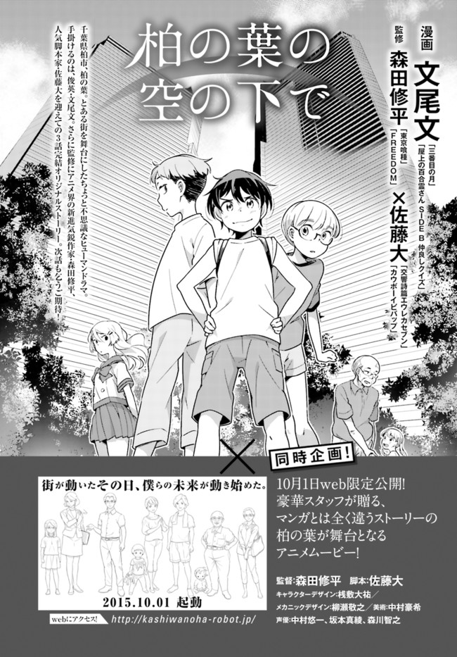 柏の葉の空の下で 第1話 その1 柏の葉の空の下で 投稿者 admin - 10年 前に 幸せな読書漫画 柏の葉の空の下で 第1話 その1 , いいねと共有ボタンをクリックすることを忘れないでください. Manga 柏の葉の空の下で 常に更新されます 無料コミック Comic Top. 他のマンガの更新を読むことを忘れないでください。 マンガコレクションのリスト 無料コミック Comic Top マンガリストメニューにあります. お友達と共有しましょう! Facebook Twitter Pinterest Whatsapp 前のエピソード すべての章 次のエピソード リスト ページング Loading.. 前のエピソード すべての章 次のエピソード リスト ページング お友達と共有しましょう! Facebook Twitter Pinterest Whatsapp お気に入りに追加に続く 0 人 柏の葉の空の下で 千葉県柏市、柏の葉。実はこの街にはとある秘密があって……!? 柏の葉スマートシティを舞台にした、3話完結形式のちょっと不思議なヒューマンドラマ。俊英・文尾文に加えて、監修にアニメ界の新進気鋭作家・森田修平と人気脚本家・佐藤大が参加。また、マンガとは全く違うストーリーが展開するアニメ版もweb限定で公開中! http://kashiwanoha-robot.jp/ 佐藤大(監修)文尾文(著者)森田修平(監修) アニメ化家族