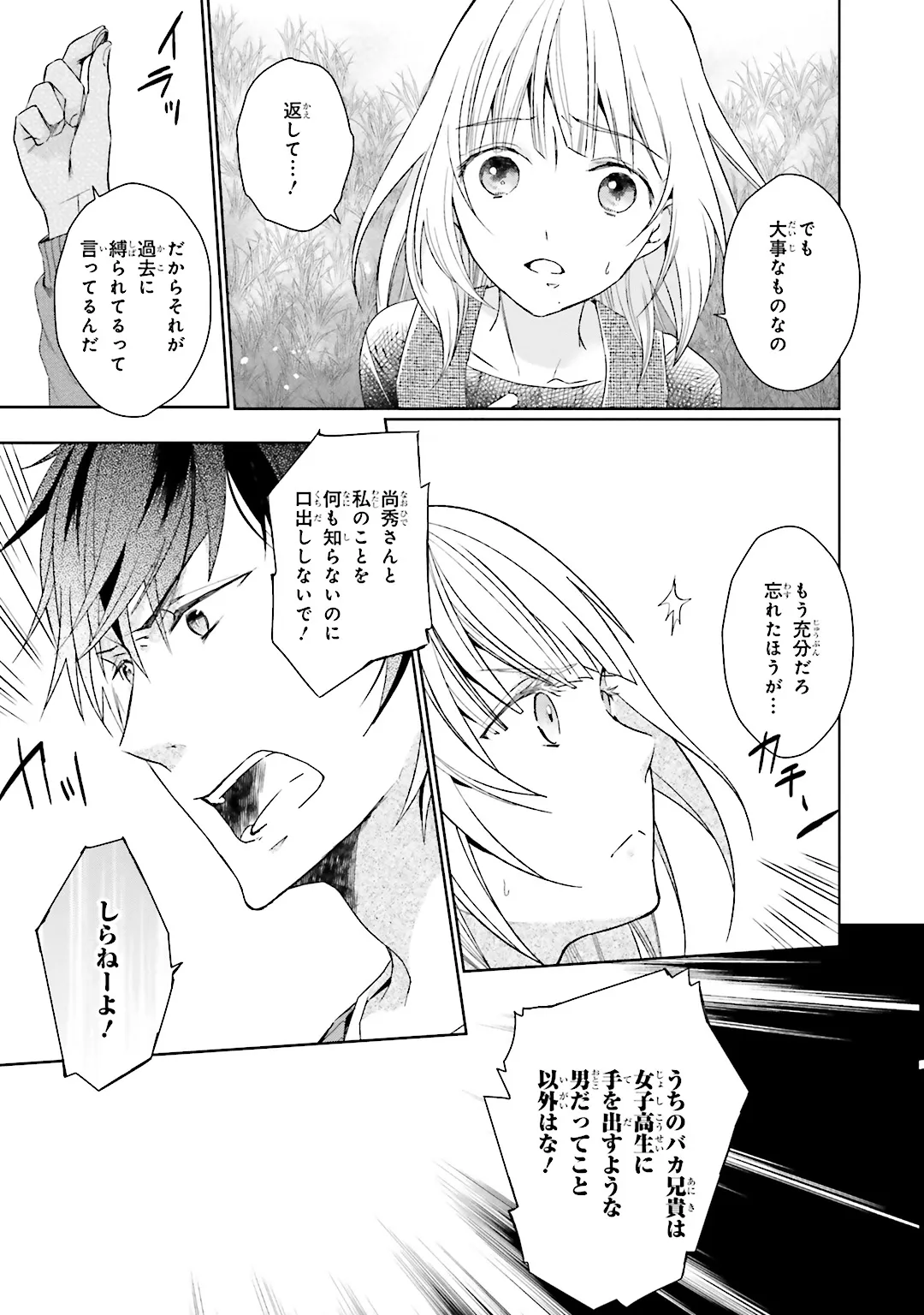 17歳で、女子高生で、未亡人。 ……現在、亡き夫の弟と同居中。 家庭内で暴力を受けていた晶は家から出るために16歳で結婚し、幸せな結婚生活を送っていた。けれどそれは、夫が事故でなくなるまでの短い間。 17歳で未亡人となった晶は、亡き夫の実家での生活を続けるが、そこには、彼女に想いを寄せる義理の弟がいて……。死者と義理の弟との切ない三角関係。