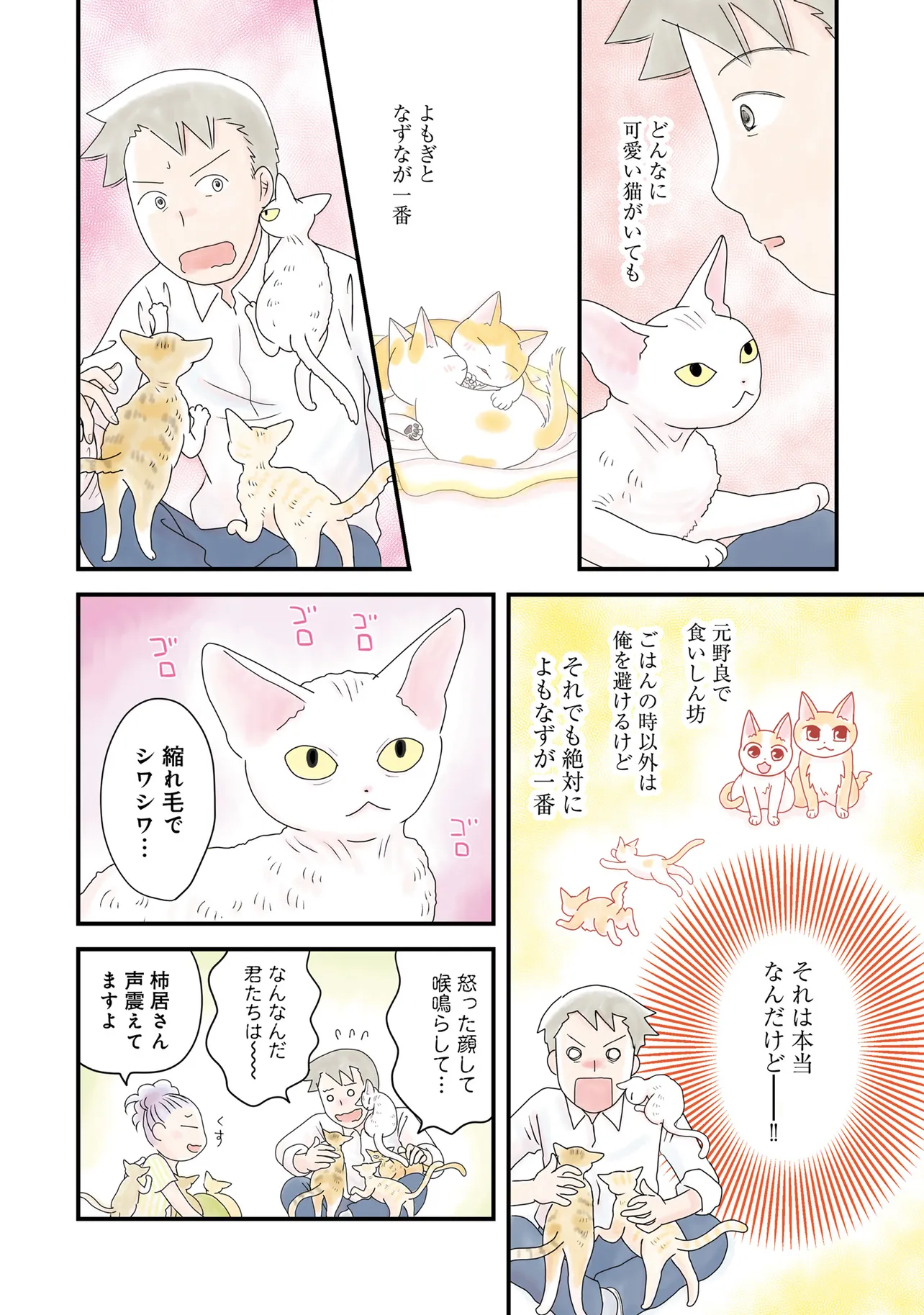 単身赴任をしていた中間管理職のサラリーマン・柿居豊は、妻が拾った子猫の姉妹に会えることを励みに激務に耐えてきた。任期を終えてウキウキ気分で帰宅した豊を待っていたのは、子猫たちが家族の中で自分にだけ懐いてくれない現実だった…。