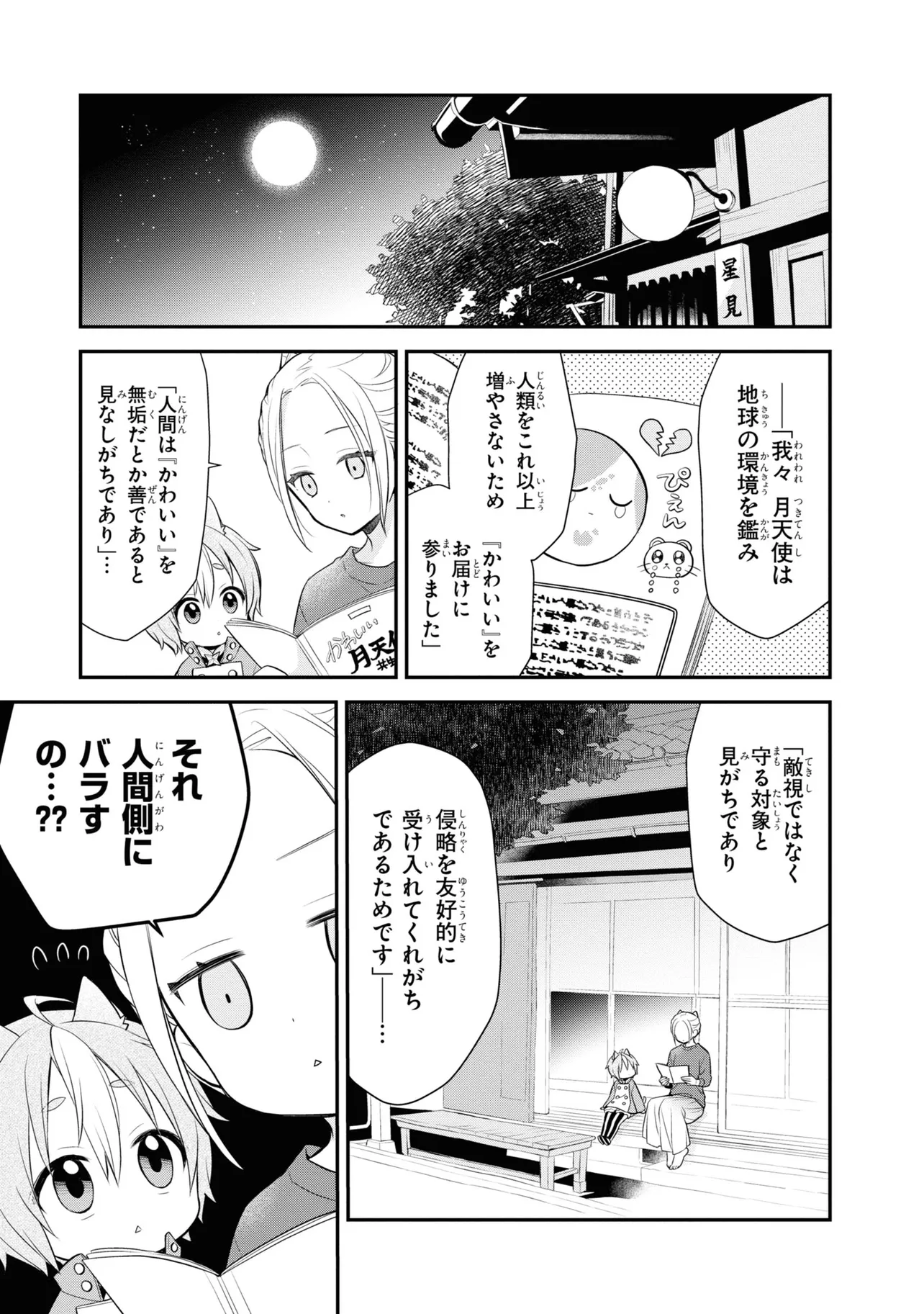 「かわいい」で地球侵略!? 月の裏側には、「月天使」と呼ばれる動物たちが住んでいる――。 彼らは自身の愛らしさを武器に「かわいい」で人類を支配する計画を水面下で推し進めていた。 落ちこぼれの月天使・NK-22(ねこ)は上司命令の下、 人間に「愛される」べく仲間と共に地球へ降り立つが、早速トラブル発生…!? 『ぼくのとなりに暗黒破壊神がいます。』の亜樹新が届ける ぎゅっとかわいい地球侵略ハートフルSFコメディ♡