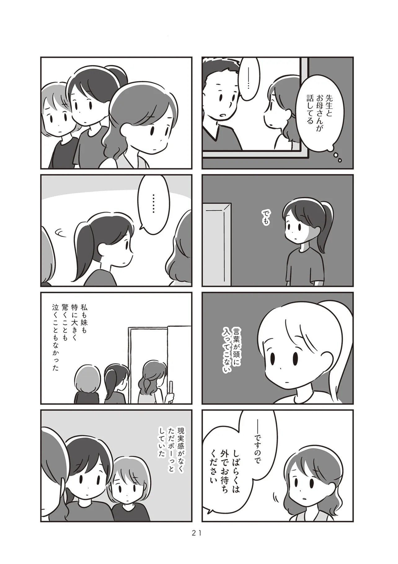 1996年夏。高校1年生のエミは、サラリーマンの父、専業主婦の母、中学2年生の妹と平穏に暮らしていた。しかしある日、父・ヒロシは脳にできた腫瘍が破裂した影響で、半身まひや失語症の障害を負ってしまう。さらに記憶能力が大幅に欠如し、家族の顔さえわからなくなってしまった父。エミは突然の事態に戸惑いながらも回復を信じ、母親や妹とともに父親を支える日々を送っていくが、一緒に暮らすにつれて、徐々に厳しい現実を突きつけられていく。そして思春期、就職、結婚、出産と、人生のステージが進むにつれ、エミは父親とどう向き合うべきなのか、わからなくなってしまうのだった。脳に障害を負った父親を支える家族の葛藤を赤裸々に描いた、胸えぐる実話コミックエッセイ。