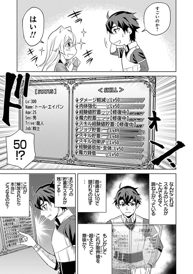 幼馴染でもある勇者に恋人を奪われ、パーティからも追放されてしまった戦士・トール。しかし絶望の中で何気なく雑魚敵を倒した瞬間、彼の秘められた【経験値貯蓄】スキルが発動し、一気にLv300に!? 勇者を軽く凌駕する力を手に入れたトールは、心の傷を癒すため世界を巡る旅に出ることを決める。 トールに活躍の機会を奪われ落ちぶれていく勇者パーティーのことなど露知らず、奴隷のカエデをはじめとした仲間と共に、彼の旅はのんびり続いていく……。 Lv300級の諸国漫遊ファンタジーが今、幕を開ける!