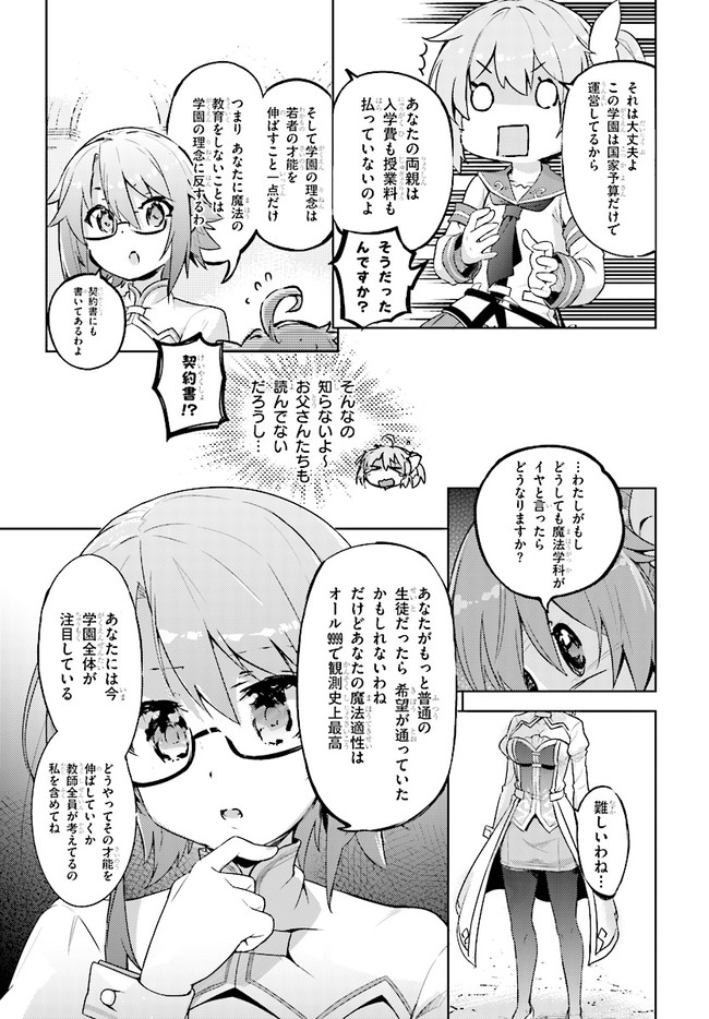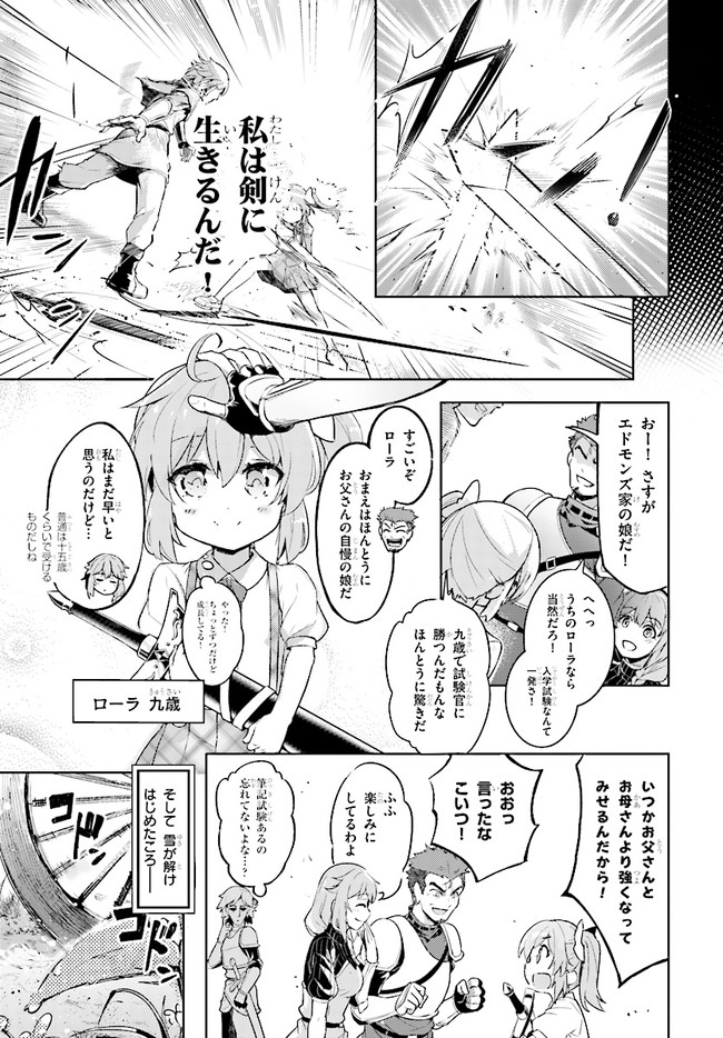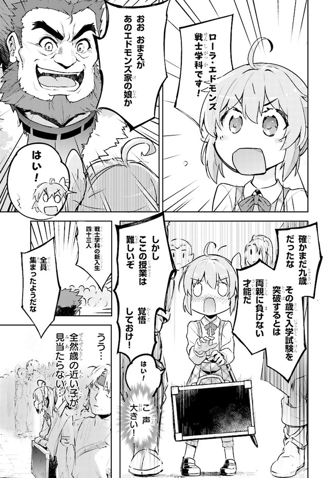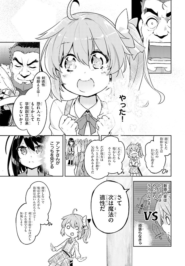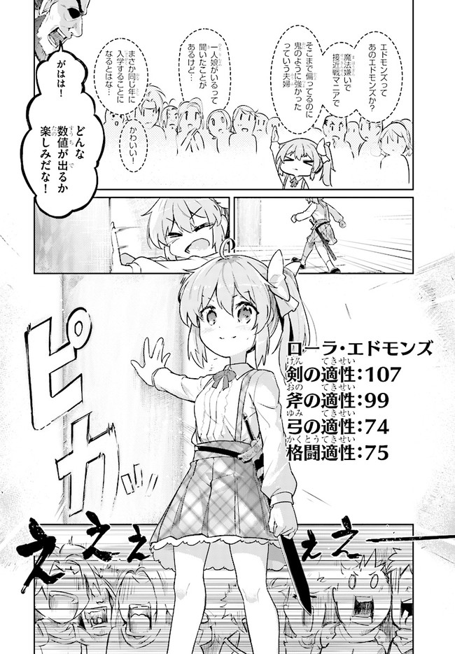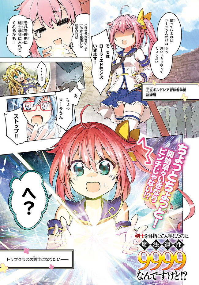 私は剣士になりたいんです! 超天才9歳児の痛快ファンタジー!! 一流の剣士を両親に持ち、自身も剣士を夢見て冒険者学園に入学した少女、ローラ。入学時に行われる剣の適性測定で驚異の数値を出し喜ぶも、ついでに測った魔法適性が全属性で9999を叩き出してしまい……!?