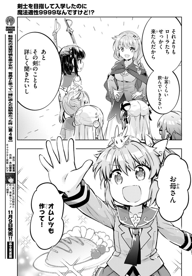 私は剣士になりたいんです! 超天才9歳児の痛快ファンタジー!! 一流の剣士を両親に持ち、自身も剣士を夢見て冒険者学園に入学した少女、ローラ。入学時に行われる剣の適性測定で驚異の数値を出し喜ぶも、ついでに測った魔法適性が全属性で9999を叩き出してしまい……!?