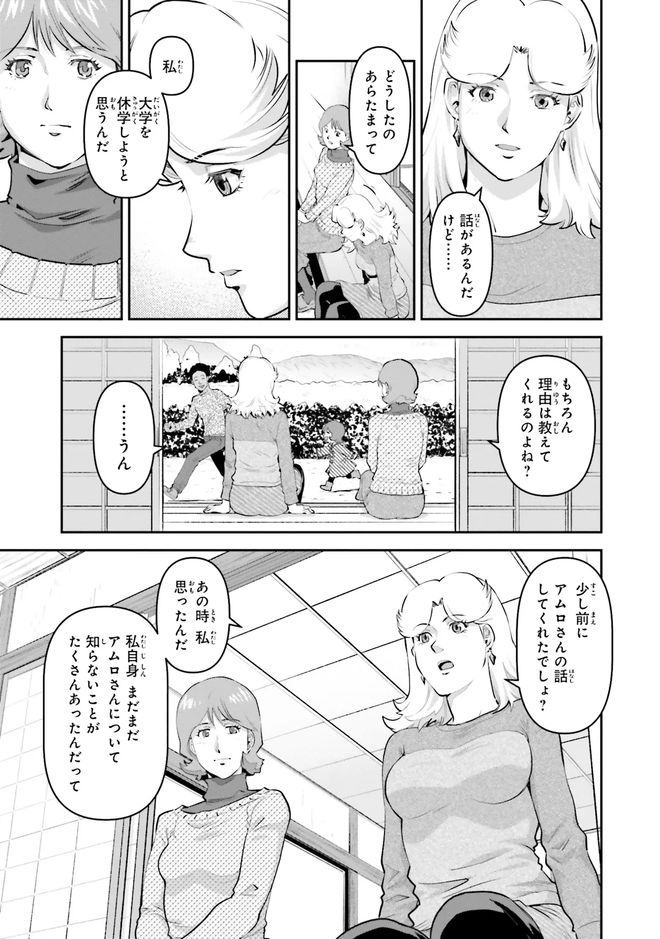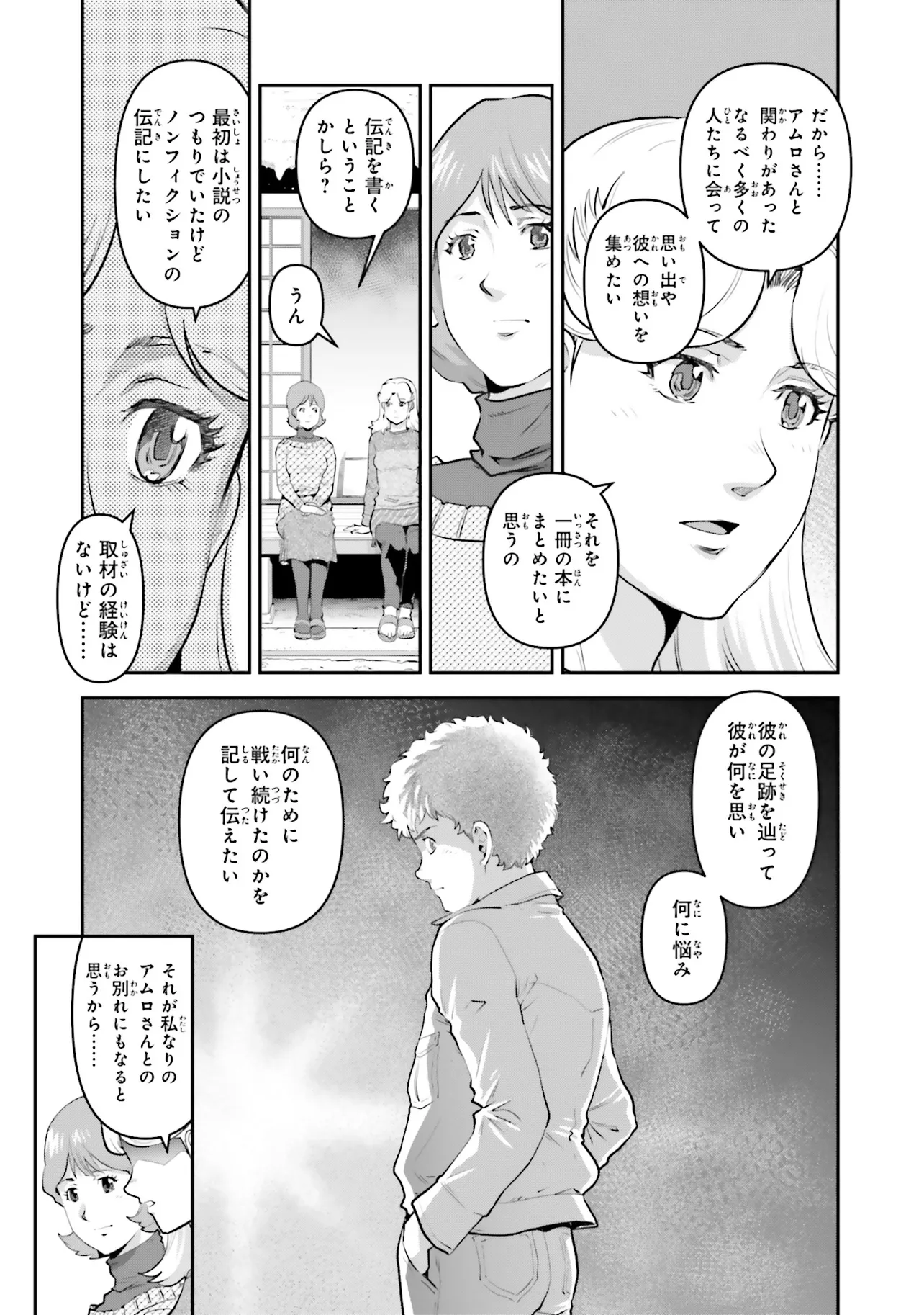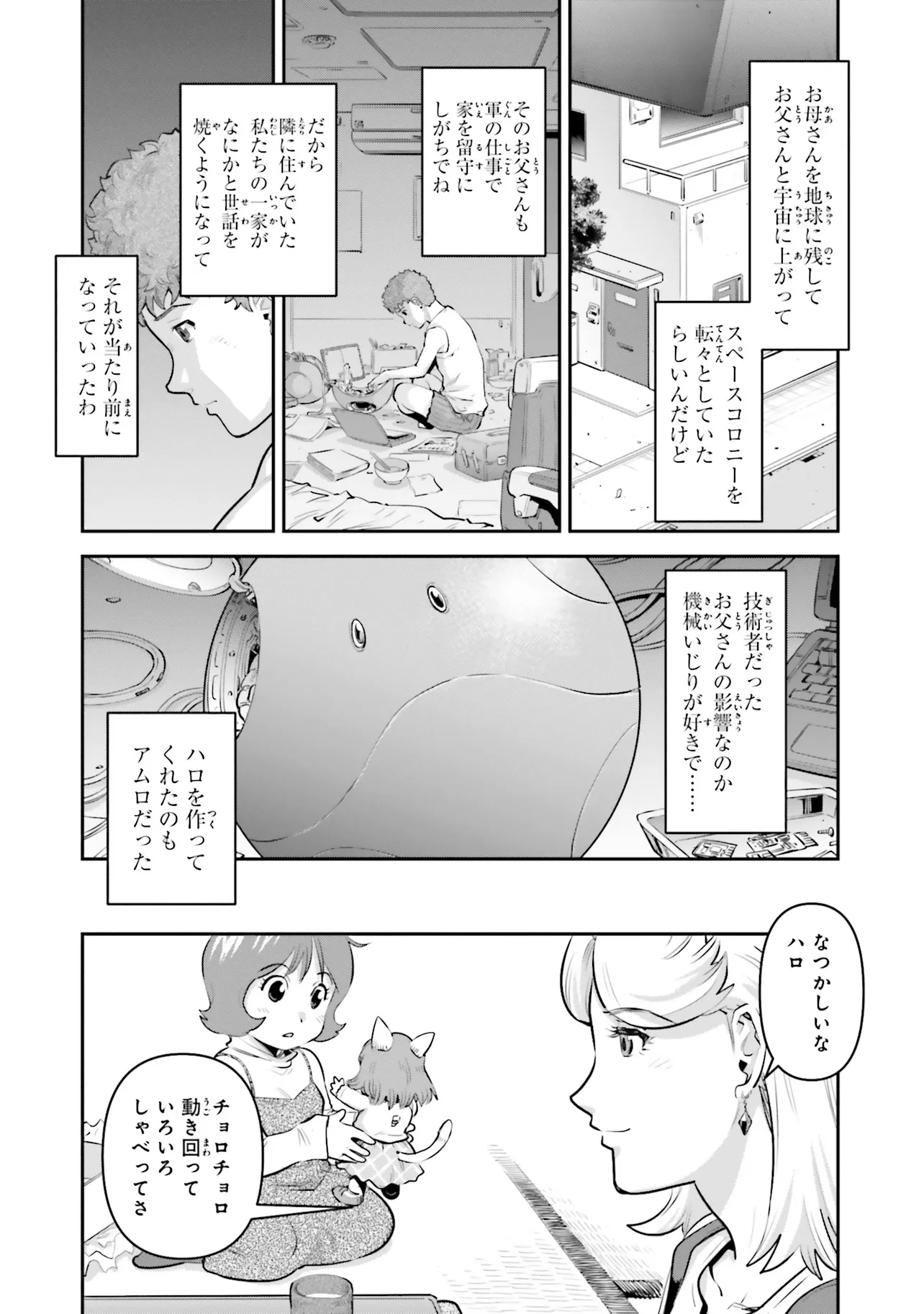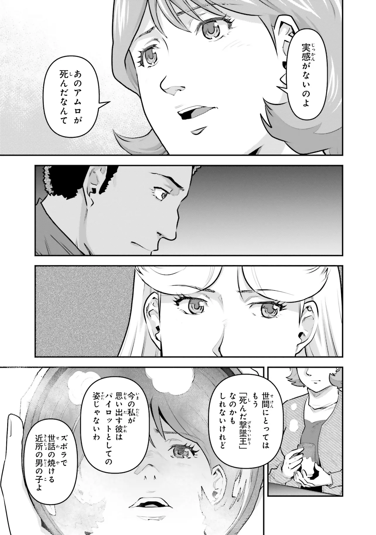 英雄アムロ・レイ! その真実にキッカが迫る!! 宇宙世紀0093年、シャアとの最期の戦いの最中、アムロ・レイはその姿を消した…。それから2年が経ち、捜索は打ち切られ戦没者に認定されたアムロは撃墜王としてのその戦果を称えられ始めていた。しかし、幼き日を共に過ごしたキッカ・コバヤシは世間のアムロへのイメージに違和感を感じ、アムロの足跡を追うことを決意する。アムロ・レイにまつわる人間像を追う旅が今、始まる…!
