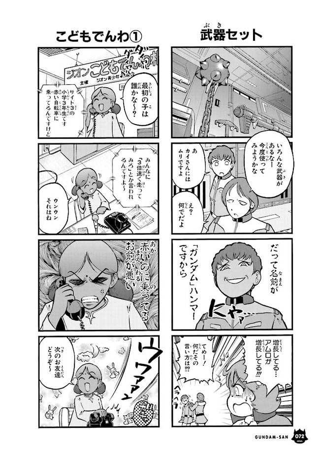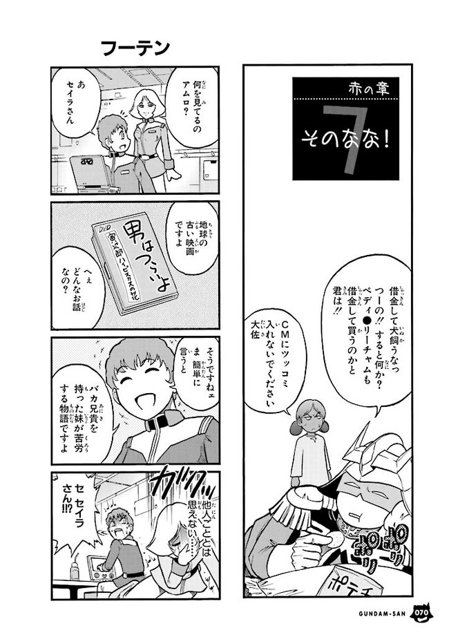 機動戦士ガンダムさん 赤の章 そのなな! 機動戦士ガンダムさん 投稿者 admin - 3年 前に 幸せな読書漫画 機動戦士ガンダムさん 赤の章 そのなな! , いいねと共有ボタンをクリックすることを忘れないでください. Manga 機動戦士ガンダムさん 常に更新されます 無料コミック Comic Top. 他のマンガの更新を読むことを忘れないでください。 マンガコレクションのリスト 無料コミック Comic Top マンガリストメニューにあります. お友達と共有しましょう! Facebook Twitter Pinterest Whatsapp 前のエピソード すべての章 次のエピソード リスト ページング Loading.. 前のエピソード すべての章 次のエピソード リスト ページング お友達と共有しましょう! Facebook Twitter Pinterest Whatsapp お気に入りに追加に続く 0 人 機動戦士ガンダムさん TVアニメ『機動戦士ガンダム』に登場するキャラクターたちが、4コマ漫画の世界で大暴れ! アムロが! ララァが!! そしてシャアが抱腹絶倒のギャグの大連発! 大和田秀樹(著者)富野由悠季(原案)矢立肇(原案) 4コマアニメ原作ガンダムギャグコメディパロディ男性向け異世界コミック