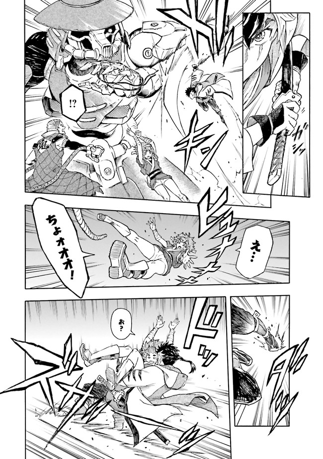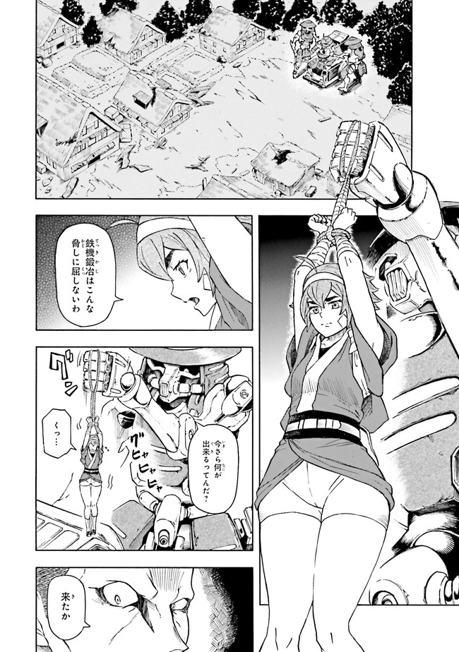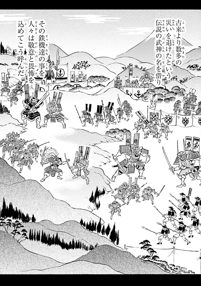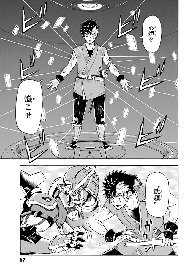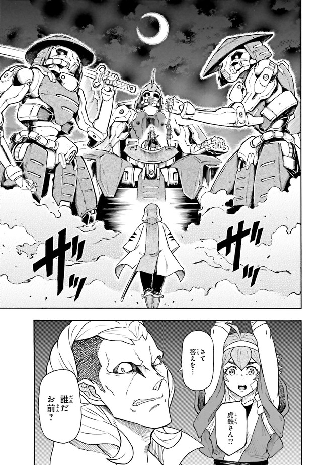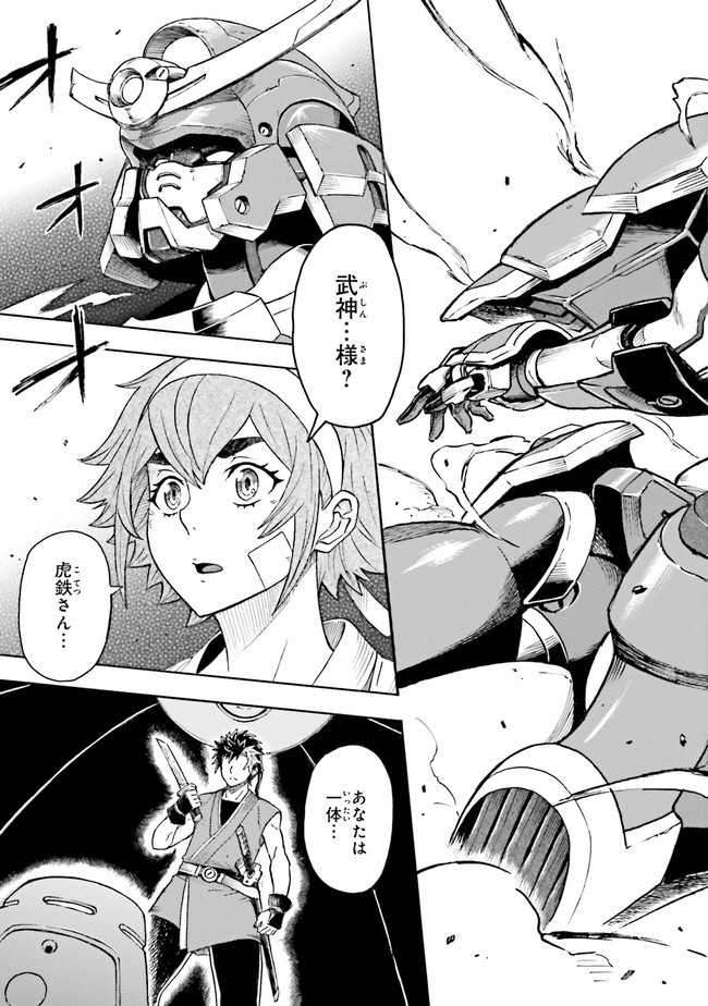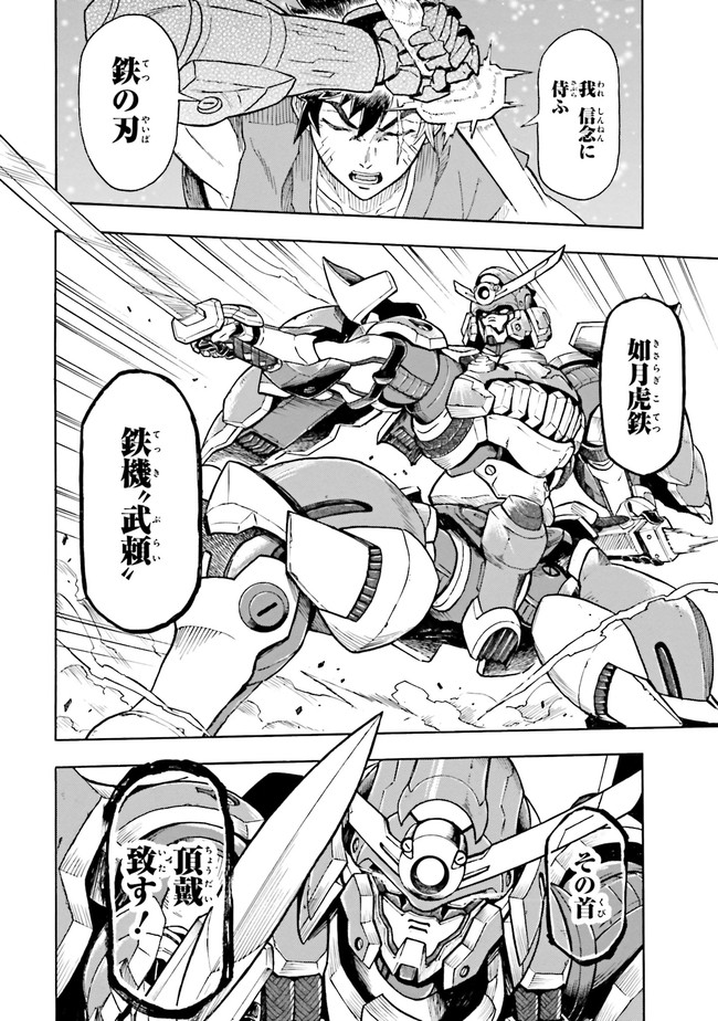 参勤鋼對――それは、全国各地から選ばれた猛者が、巨大な鎧武者・鉄機に乗り込んで戦う大武闘会。 勝者には望む物が与えられるその大会に、『頑駄無』武頼を駆る如月虎鉄は、故郷を取り戻すため参加するのだが…!? 「鉄血のオルフェンズ」の礒部一真が放つ、新時代のガンダムバトル爆誕!!