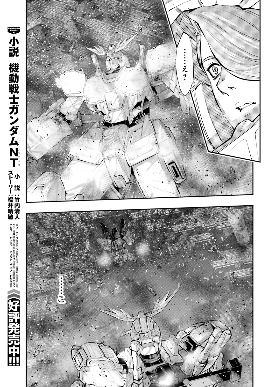 機動戦士ガンダムNT 第62話-4 機動戦士ガンダム NT 投稿者 admin - 10か月 前に 幸せな読書漫画 機動戦士ガンダムNT 第62話-4 , いいねと共有ボタンをクリックすることを忘れないでください. Manga 機動戦士ガンダム NT 常に更新されます 無料コミック Comic Top. 他のマンガの更新を読むことを忘れないでください。 マンガコレクションのリスト 無料コミック Comic Top マンガリストメニューにあります. お友達と共有しましょう! Facebook Twitter Pinterest Whatsapp 前のエピソード すべての章 次のエピソード リスト ページング Loading.. 前のエピソード すべての章 次のエピソード リスト ページング お友達と共有しましょう! Facebook Twitter Pinterest Whatsapp お気に入りに追加に続く 2 人 機動戦士ガンダム NT 映画や小説とも異なる新たな「NT」の物語が幕を開ける――!! U.C.0097――。『ラプラスの箱』が開かれて一年。 消息不明となっていた《ユニコーンガンダム》3号機が、再びその姿を見せ始めた。 金色の“不死鳥……その名は《フェネクス》。 ”宇宙世紀シリーズ最新作映画「機動戦士ガンダムNT」を、「ガンダムUC バンデシネ」のタッグ福井晴敏×大森倖三が、映画では描かれなかったオリジナルエピソードなど新要素を盛り込み堂々コミカライズ!! ガンダムコミカライズバトルアクションメカ