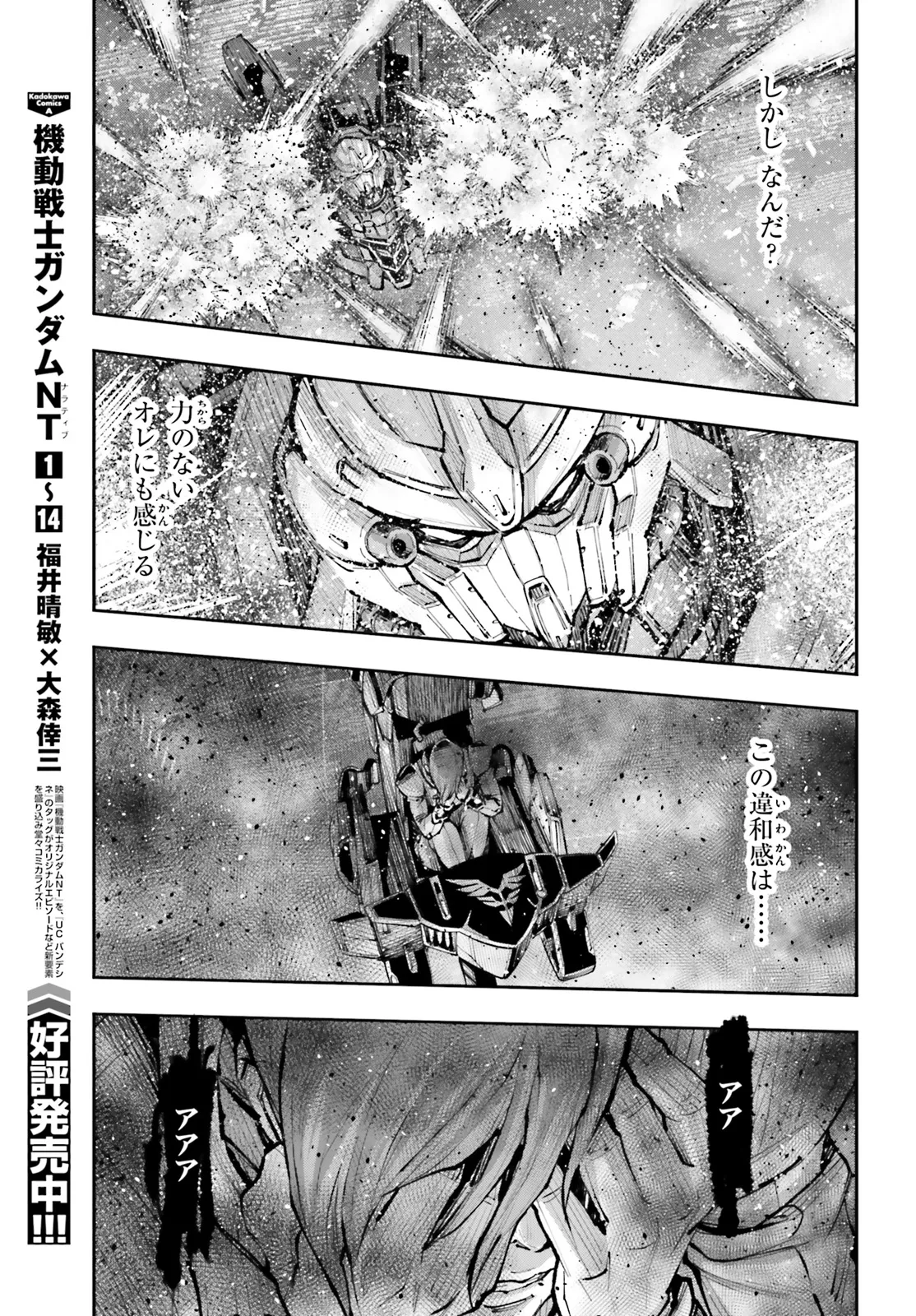 機動戦士ガンダムNT 第63話-1 機動戦士ガンダム NT 投稿者 admin - 10か月 前に 幸せな読書漫画 機動戦士ガンダムNT 第63話-1 , いいねと共有ボタンをクリックすることを忘れないでください. Manga 機動戦士ガンダム NT 常に更新されます 無料コミック Comic Top. 他のマンガの更新を読むことを忘れないでください。 マンガコレクションのリスト 無料コミック Comic Top マンガリストメニューにあります. お友達と共有しましょう! Facebook Twitter Pinterest Whatsapp 前のエピソード すべての章 次のエピソード リスト ページング Loading.. 前のエピソード すべての章 次のエピソード リスト ページング お友達と共有しましょう! Facebook Twitter Pinterest Whatsapp お気に入りに追加に続く 2 人 機動戦士ガンダム NT 映画や小説とも異なる新たな「NT」の物語が幕を開ける――!! U.C.0097――。『ラプラスの箱』が開かれて一年。 消息不明となっていた《ユニコーンガンダム》3号機が、再びその姿を見せ始めた。 金色の“不死鳥……その名は《フェネクス》。 ”宇宙世紀シリーズ最新作映画「機動戦士ガンダムNT」を、「ガンダムUC バンデシネ」のタッグ福井晴敏×大森倖三が、映画では描かれなかったオリジナルエピソードなど新要素を盛り込み堂々コミカライズ!! ガンダムコミカライズバトルアクションメカ