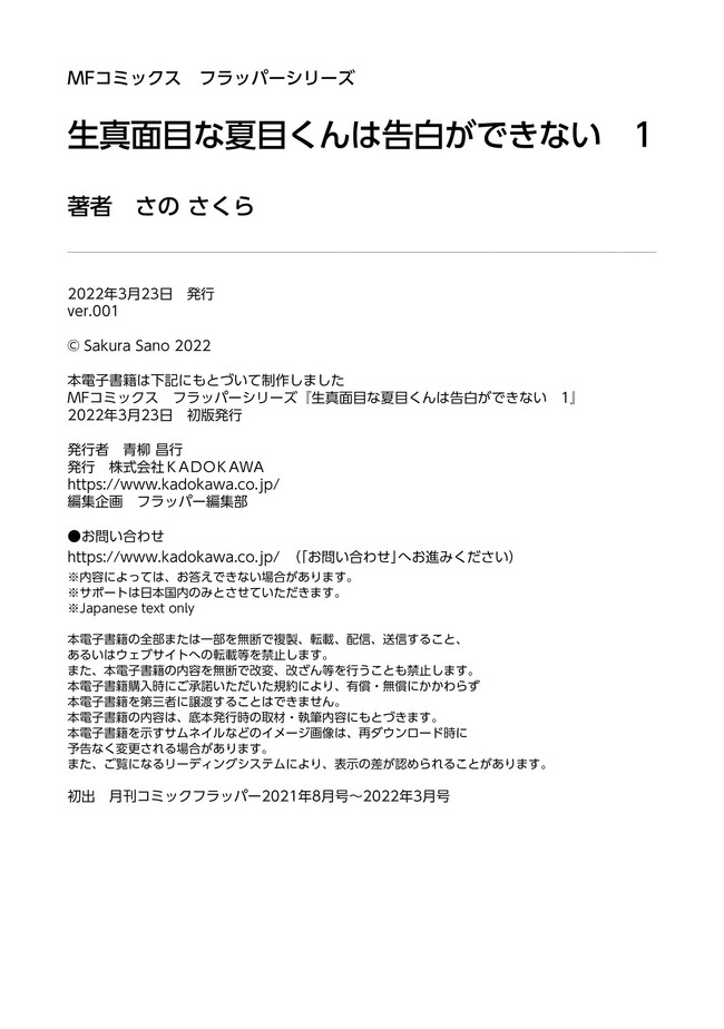 生真面目な夏目くんは告白ができない 「フラッパー感謝祭2023」コミックス1巻公開