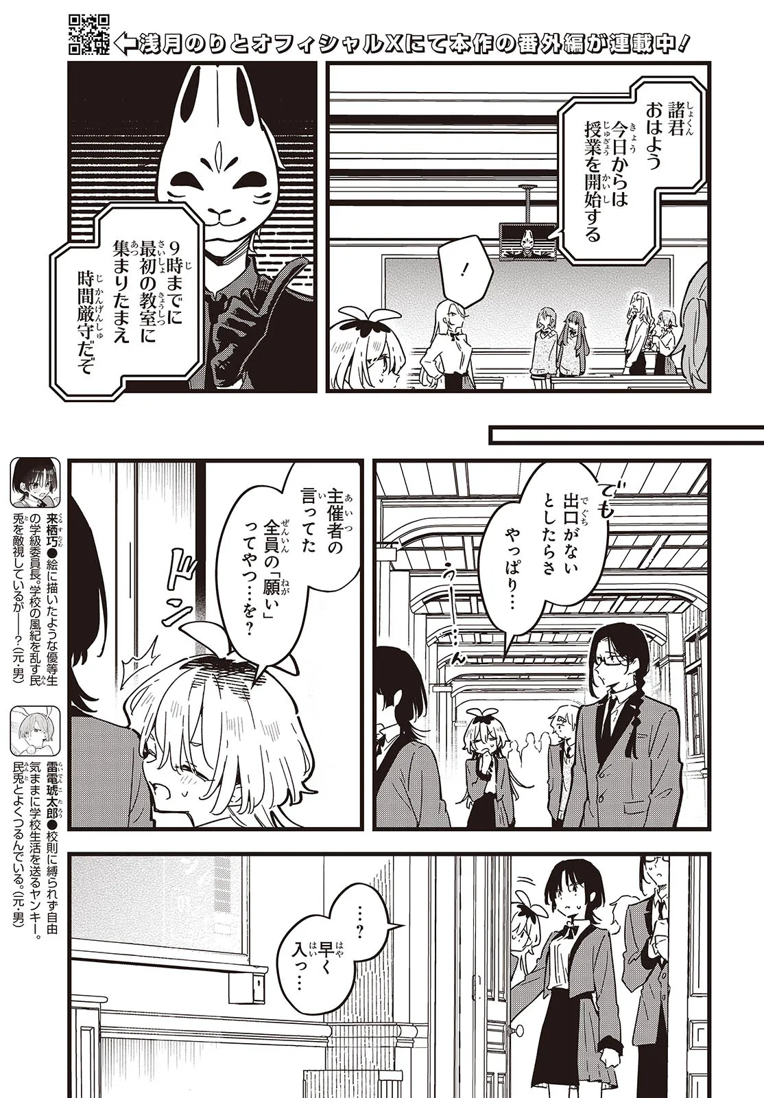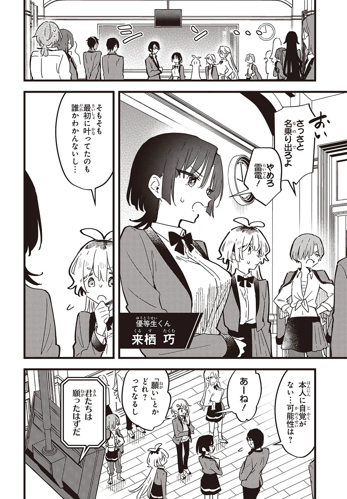 女の子好きを自称する高校生・獅子堂民兎(ししどうみんと)は、修学旅行中にクラスメイト全員と学校のような施設に隔離されてしまった。 そこは、謎の声の主により造られた「全員の願いが叶わないと出られない閉鎖空間――」。 さらに民兎たちクラス全員の体に異変が!?