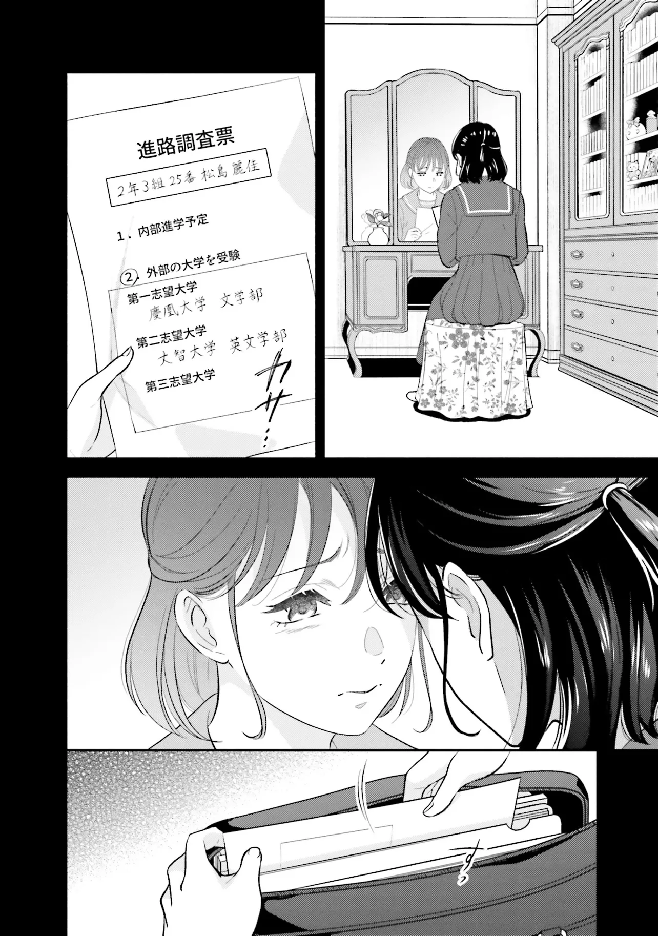親同士が再婚してすぐに海外出張に発ってしまったため、ふたりで生活することになったサチとあやり。言葉数が少なく目つきの鋭いあやりに対し、サチは物怖じし、これからの同居生活に大きな不安を感じてしまう。そんなとき、父親から届い