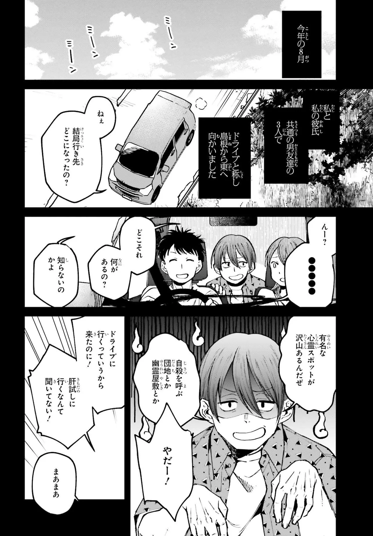近畿地方のある場所について 第4話 近畿地方のある場所について 投稿者 admin - 2年 前に 幸せな読書漫画 近畿地方のある場所について 第4話 , いいねと共有ボタンをクリックすることを忘れないでください. Manga 近畿地方のある場所について 常に更新されます 無料コミック Comic Top. 他のマンガの更新を読むことを忘れないでください。 マンガコレクションのリスト 無料コミック Comic Top マンガリストメニューにあります. お友達と共有しましょう! Facebook Twitter Pinterest Whatsapp 前のエピソード すべての章 次のエピソード リスト ページング Loading.. 前のエピソード すべての章 次のエピソード リスト ページング お友達と共有しましょう! Facebook Twitter Pinterest Whatsapp お気に入りに追加に続く 3 人 近畿地方のある場所について 行方不明になった友人・小沢。オカルト雑誌の編集者であった彼は、失踪する前に「●●●●●」という地域にまつわる怪談を取材していた。過去の雑誌記事からの引用、読者からのおかしな体験談、インターネット掲示板の書き込みーー彼の足取りを追うため、彼が収集していた資料を読み解いていくと、別々の怪談として扱われていたそれらにはある繋がりが浮かび上がってくるのであった。 小説投稿サイト「カクヨム」で発表され、口コミ的に波紋を呼んだ怪作モキュメンタリーホラーがコミック化。 碓井ツカサ(漫画)背筋(原作) ホラー・オカルト心霊怪異都市伝説