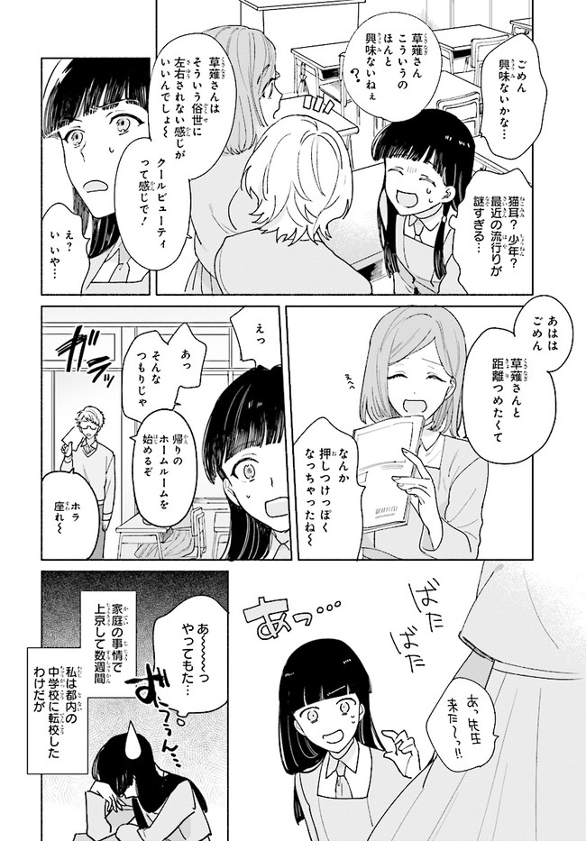 【よみきり】 家庭の事情で都内の中学校に転校してきた草薙真紀。クラスになじめない彼女の前に現れた猫耳のお化けは実は――!? ASUKA初登場の秋鹿(あいか)ユギリが贈るほんのり切ない読み切りストーリー!