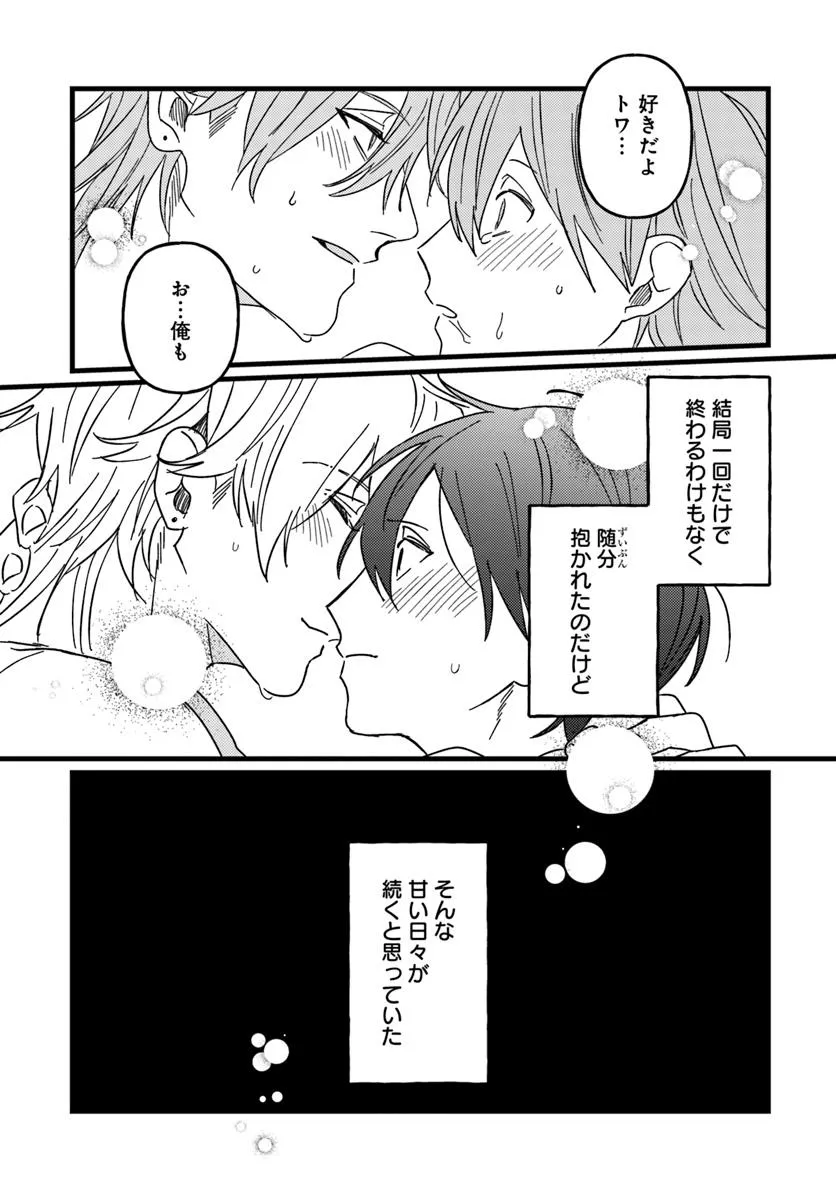 「きみのことなんか嫌いだよ」 俺の事を嫌っていたはずなのに、異世界に出戻ったら俺の護衛騎士が――!? 中二病を拗らせたまま異世界転移した十三歳の少年トワ。 希少な異邦人のハズが、自分には異邦人にのみ与えられる能力、ギフトが発現しなかった……。 自分が無能力であることを隠すあまり、傲慢に振る舞い、周囲だけでなく、自分の護衛騎士のグリズにまで嫌われてしまう。 唯一の味方だと思っていたグリズに嫌われ落ち込んでいると、背後から何者かに襲われてしまって――!? 『殺された――』と思った瞬間、目が覚めればそこは元の世界。 グリズの事を引きずったまま十五年の時が経ち、地味なサラリーマンとして暮らしてきたトワだったが、なぜか再び異世界へと迷い込んでしまって――!?
