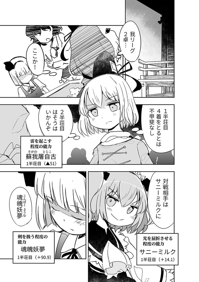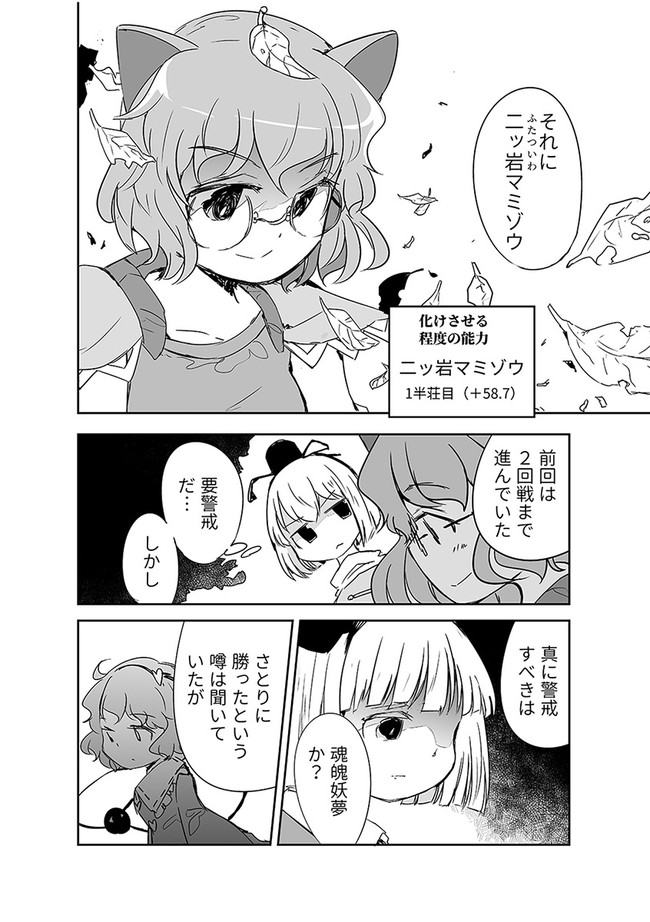 みょんなことから白玉楼の権利書を賭けて麻雀で勝負することになってしまった魂魄妖夢。だが麻雀初心者の妖夢に立ちふさがるのは「相手の心を読む程度の能力」を持つ妖怪・古明地さとり・・・ッ! はたして妖夢はこのピンチを潜り抜けられるのか?