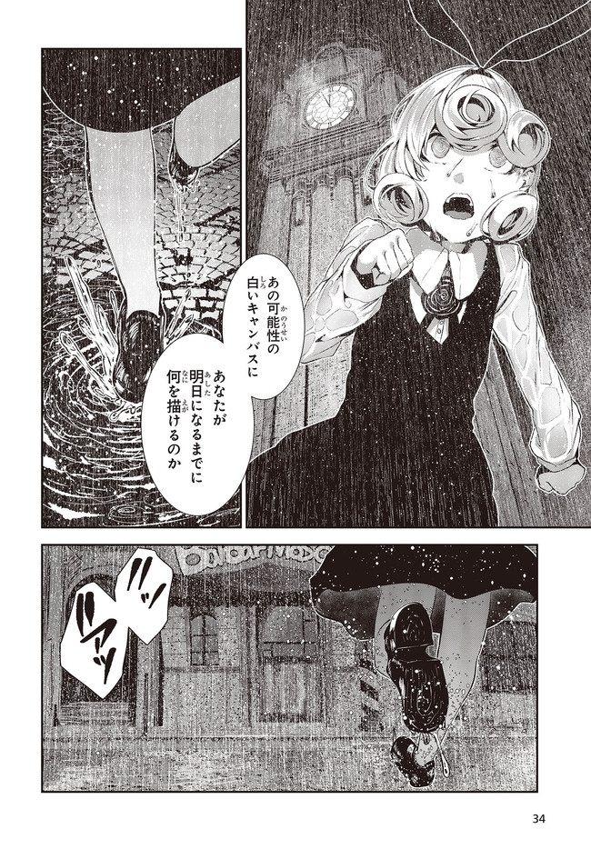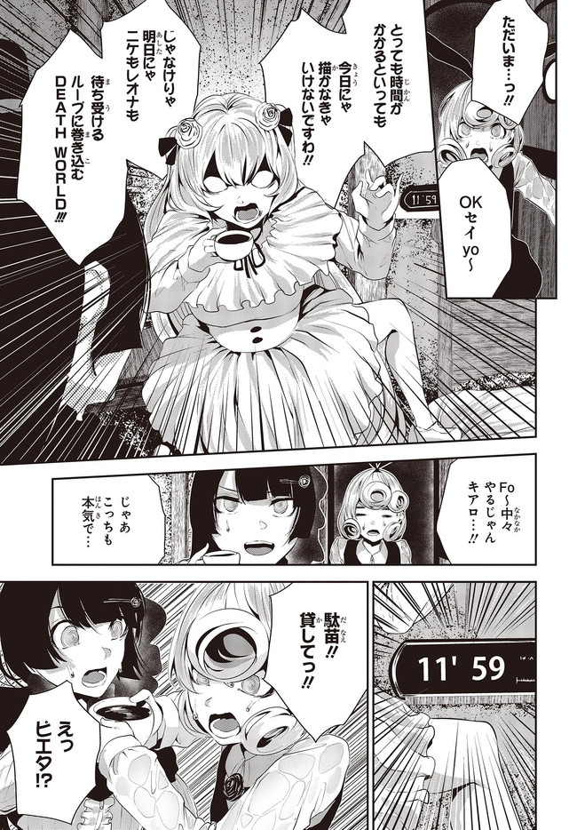 黒く、黒く、黒く。 黒く染まるその世界《なか》で 少女の日常は廻る――。 黒い雨が降る世界で少女・ピエタはなんでもない日常を送っていた。 いつもどおり雨が降っていて、いつもどおりの道を歩いて学校に向かい、友人・駄苗との会話を楽しむ。 そんな『いつもどおり』に幸せを感じていた。 そんな『いつもどおり』を過ごすピエタ。 その日もまた駄苗との会話を楽しむ――はずだった。 「でもどうして! どうしてピエタは昨日の今日のことを覚えてるの!!?」 のたうち回りながら、少女たちは「明日」を目指す――。