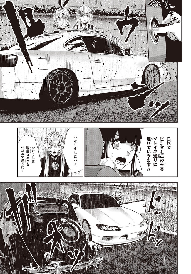黒く、黒く、黒く。 黒く染まるその世界《なか》で 少女の日常は廻る――。 黒い雨が降る世界で少女・ピエタはなんでもない日常を送っていた。 いつもどおり雨が降っていて、いつもどおりの道を歩いて学校に向かい、友人・駄苗との会話を楽しむ。 そんな『いつもどおり』に幸せを感じていた。 そんな『いつもどおり』を過ごすピエタ。 その日もまた駄苗との会話を楽しむ――はずだった。 「でもどうして! どうしてピエタは昨日の今日のことを覚えてるの!!?」 のたうち回りながら、少女たちは「明日」を目指す――。