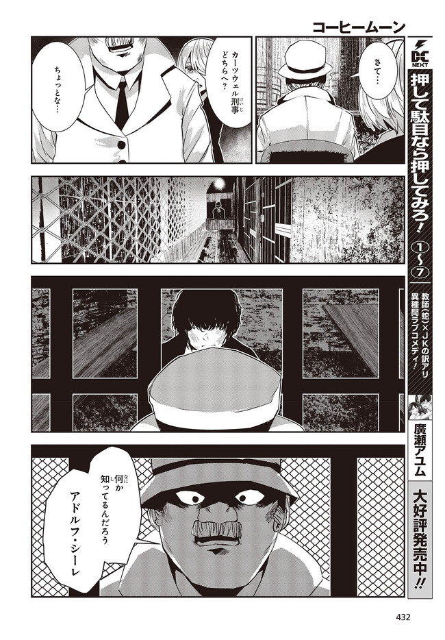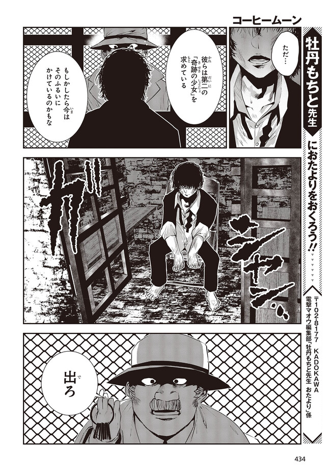 コーヒームーン 第28話「私は幸せな人間なのか、」③ コーヒームーン 投稿者 admin - 3年 前に 幸せな読書漫画 コーヒームーン 第28話「私は幸せな人間なのか、」③ , いいねと共有ボタンをクリックすることを忘れないでください. Manga コーヒームーン 常に更新されます 無料コミック Comic Top. 他のマンガの更新を読むことを忘れないでください。 マンガコレクションのリスト 無料コミック Comic Top マンガリストメニューにあります. お友達と共有しましょう! Facebook Twitter Pinterest Whatsapp 前のエピソード すべての章 次のエピソード リスト ページング Loading.. 前のエピソード すべての章 次のエピソード リスト ページング お友達と共有しましょう! Facebook Twitter Pinterest Whatsapp お気に入りに追加に続く 0 人 コーヒームーン 黒く、黒く、黒く。 黒く染まるその世界《なか》で 少女の日常は廻る――。 黒い雨が降る世界で少女・ピエタはなんでもない日常を送っていた。 いつもどおり雨が降っていて、いつもどおりの道を歩いて学校に向かい、友人・駄苗との会話を楽しむ。 そんな『いつもどおり』に幸せを感じていた。 そんな『いつもどおり』を過ごすピエタ。 その日もまた駄苗との会話を楽しむ――はずだった。 「でもどうして! どうしてピエタは昨日の今日のことを覚えてるの!!?」 のたうち回りながら、少女たちは「明日」を目指す――。 牡丹もちと(著者) SFコメディサスペンス日常