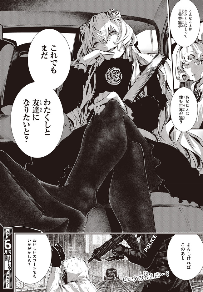 コーヒームーン 第3話「大好きです」③ コーヒームーン 投稿者 admin - 3年 前に 幸せな読書漫画 コーヒームーン 第3話「大好きです」③ , いいねと共有ボタンをクリックすることを忘れないでください. Manga コーヒームーン 常に更新されます 無料コミック Comic Top. 他のマンガの更新を読むことを忘れないでください。 マンガコレクションのリスト 無料コミック Comic Top マンガリストメニューにあります. お友達と共有しましょう! Facebook Twitter Pinterest Whatsapp 前のエピソード すべての章 次のエピソード リスト ページング Loading.. 前のエピソード すべての章 次のエピソード リスト ページング お友達と共有しましょう! Facebook Twitter Pinterest Whatsapp お気に入りに追加に続く 0 人 コーヒームーン 黒く、黒く、黒く。 黒く染まるその世界《なか》で 少女の日常は廻る――。 黒い雨が降る世界で少女・ピエタはなんでもない日常を送っていた。 いつもどおり雨が降っていて、いつもどおりの道を歩いて学校に向かい、友人・駄苗との会話を楽しむ。 そんな『いつもどおり』に幸せを感じていた。 そんな『いつもどおり』を過ごすピエタ。 その日もまた駄苗との会話を楽しむ――はずだった。 「でもどうして! どうしてピエタは昨日の今日のことを覚えてるの!!?」 のたうち回りながら、少女たちは「明日」を目指す――。 牡丹もちと(著者) SFコメディサスペンス日常