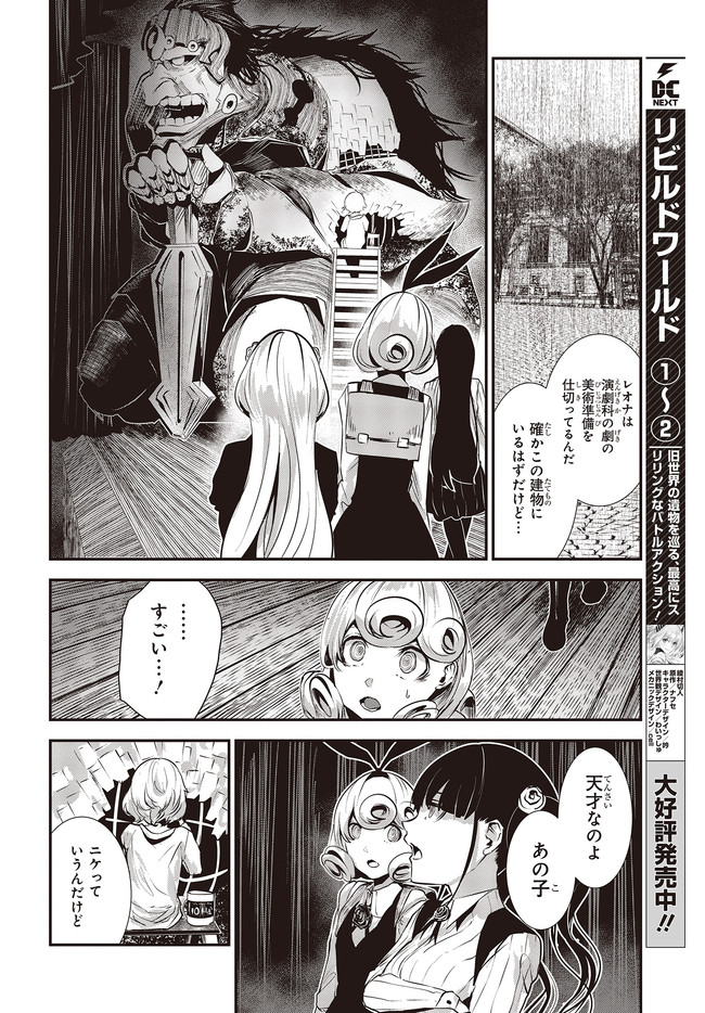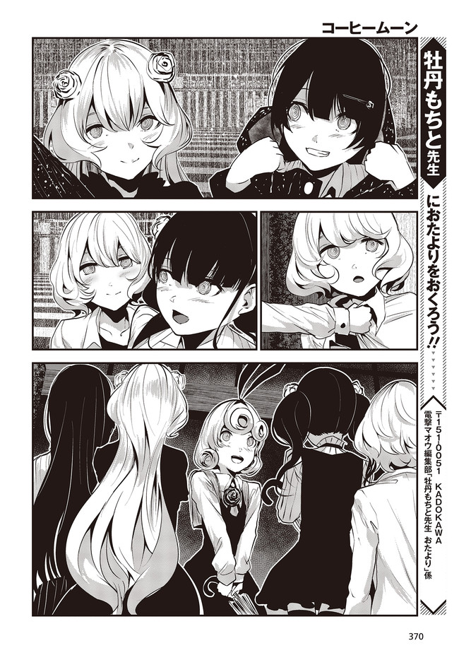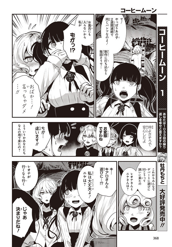 コーヒームーン 第7話「明日が」③ コーヒームーン 投稿者 admin - 3年 前に 幸せな読書漫画 コーヒームーン 第7話「明日が」③ , いいねと共有ボタンをクリックすることを忘れないでください. Manga コーヒームーン 常に更新されます 無料コミック Comic Top. 他のマンガの更新を読むことを忘れないでください。 マンガコレクションのリスト 無料コミック Comic Top マンガリストメニューにあります. お友達と共有しましょう! Facebook Twitter Pinterest Whatsapp 前のエピソード すべての章 次のエピソード リスト ページング Loading.. 前のエピソード すべての章 次のエピソード リスト ページング お友達と共有しましょう! Facebook Twitter Pinterest Whatsapp お気に入りに追加に続く 0 人 コーヒームーン 黒く、黒く、黒く。 黒く染まるその世界《なか》で 少女の日常は廻る――。 黒い雨が降る世界で少女・ピエタはなんでもない日常を送っていた。 いつもどおり雨が降っていて、いつもどおりの道を歩いて学校に向かい、友人・駄苗との会話を楽しむ。 そんな『いつもどおり』に幸せを感じていた。 そんな『いつもどおり』を過ごすピエタ。 その日もまた駄苗との会話を楽しむ――はずだった。 「でもどうして! どうしてピエタは昨日の今日のことを覚えてるの!!?」 のたうち回りながら、少女たちは「明日」を目指す――。 牡丹もちと(著者) SFコメディサスペンス日常