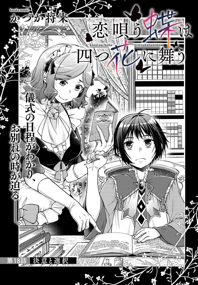 恋唄う蝶は四つ花に舞う 18-1話 恋唄う蝶は四つ花に舞う 投稿者 admin - 3年 前に 幸せな読書漫画 恋唄う蝶は四つ花に舞う 18-1話 , いいねと共有ボタンをクリックすることを忘れないでください. Manga 恋唄う蝶は四つ花に舞う 常に更新されます 無料コミック Comic Top. 他のマンガの更新を読むことを忘れないでください。 マンガコレクションのリスト 無料コミック Comic Top マンガリストメニューにあります. お友達と共有しましょう! Facebook Twitter Pinterest Whatsapp 前のエピソード すべての章 次のエピソード リスト ページング Loading.. 前のエピソード すべての章 次のエピソード リスト ページング お友達と共有しましょう! Facebook Twitter Pinterest Whatsapp お気に入りに追加に続く 3 人 恋唄う蝶は四つ花に舞う 花の弁のごとく東西南北に位置し 国境を分かつ4つの王国 通称「四つ花」。 この4国には、それぞれ一人ずつ「四つ花の蝶」と呼ばれる 神子たちがおり、西の王国の蝶・カーネリアは 任務のために初めて南の王国を訪れることとなる。 そこで彼女を待っていたのは…… 4人の蝶たちが紡ぐ、転生ファンタジー! かづか将来(漫画) forgirlsここではないどこかへファンタジーフロースコミック姉弟幼馴染み異世界花蝶転生魔法